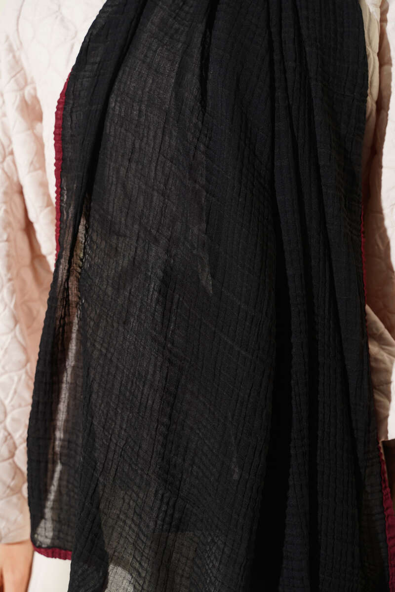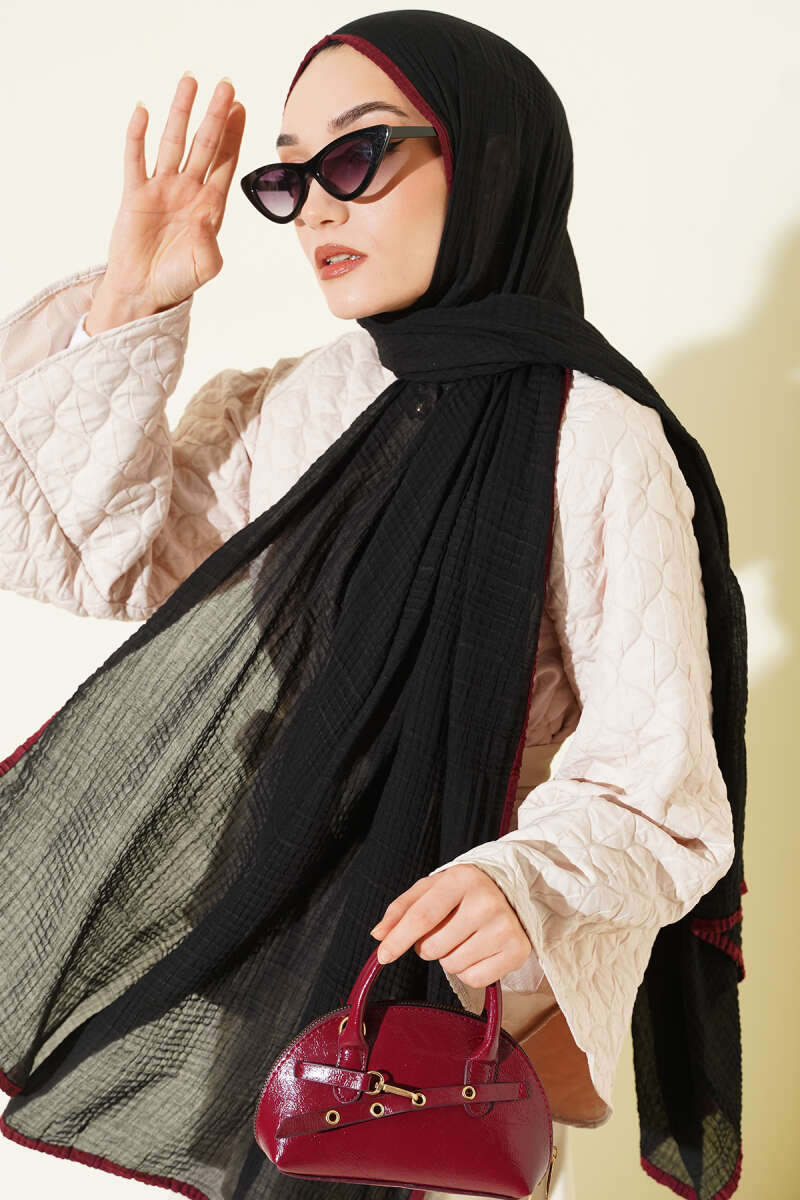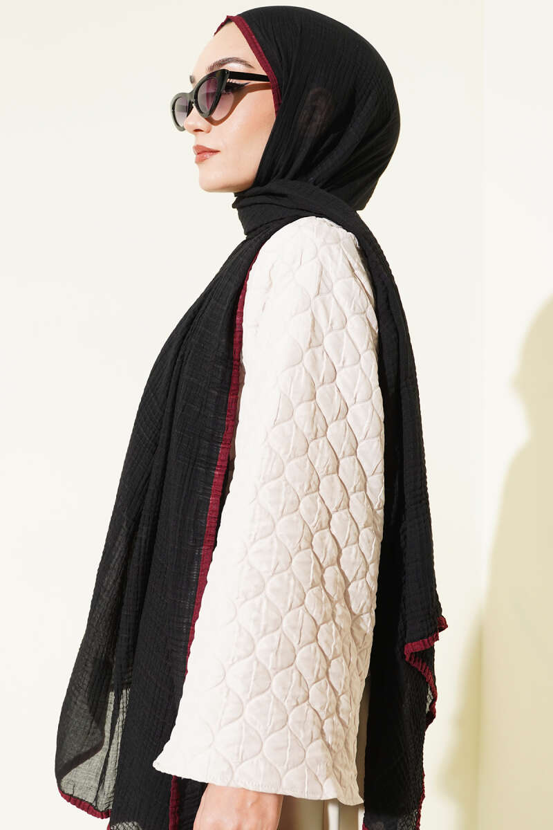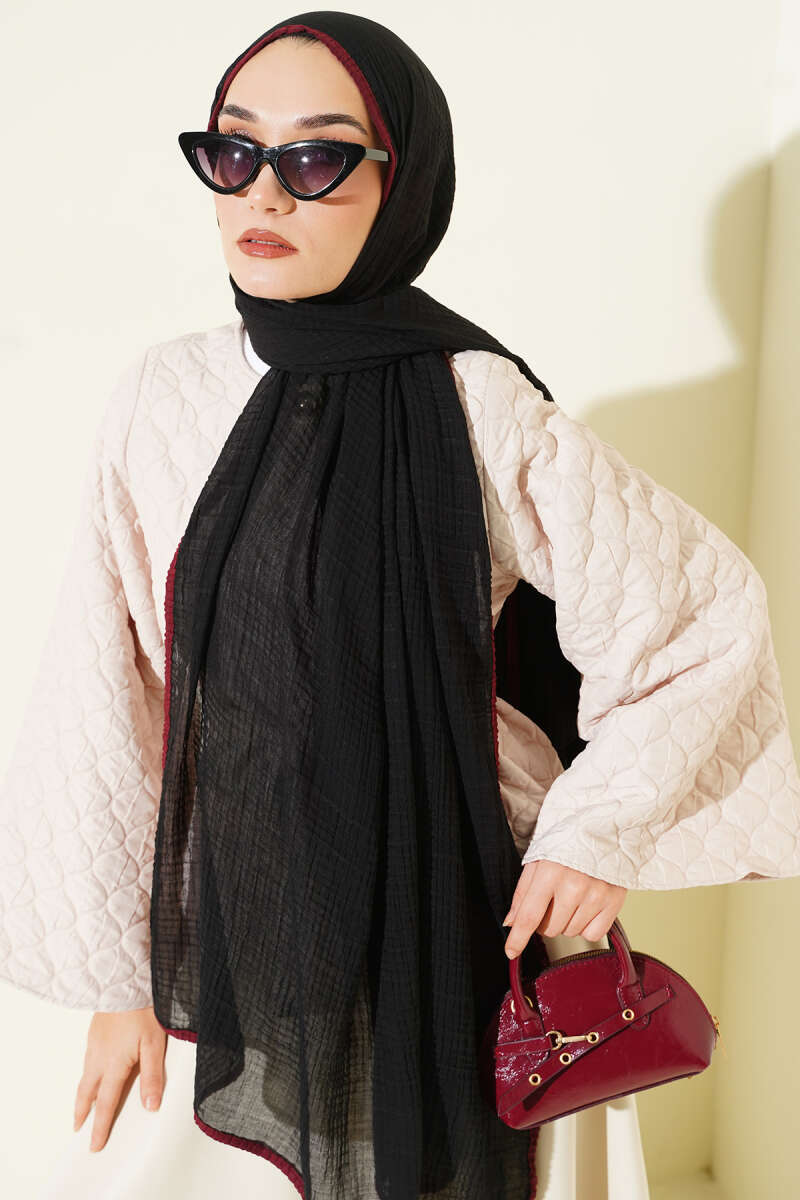 Biyeli Müslin Şal Siyah Bordo