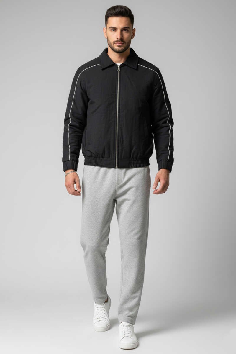 Biyeli Oversize Erkek Mont Siyah