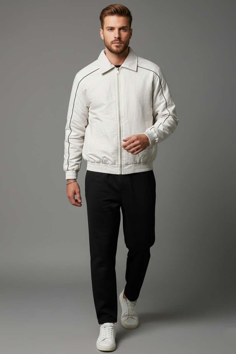 Fermuarlı Bel Lastikli Erkek Kaşe Mont Siyah