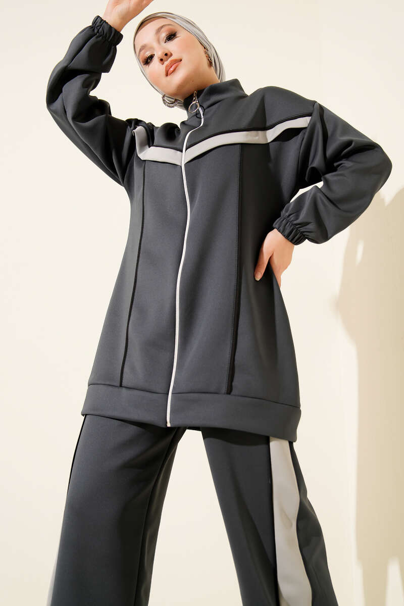 Yaka Çıtçıtlı Kapüşonlu İkili Takım Siyah