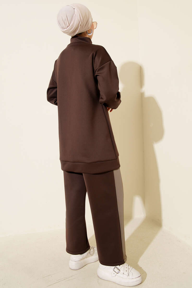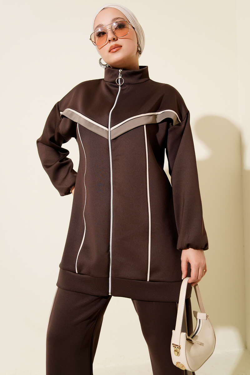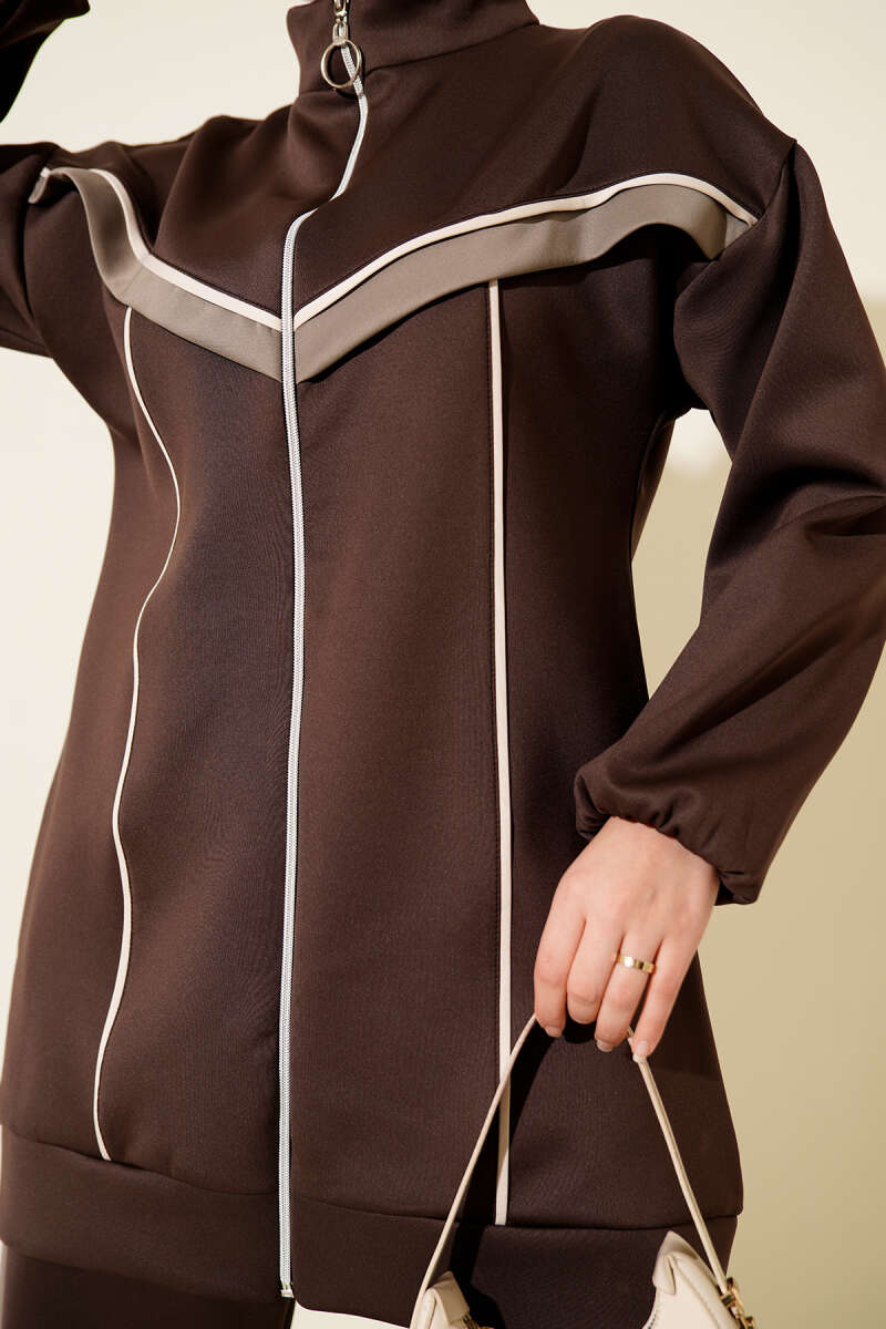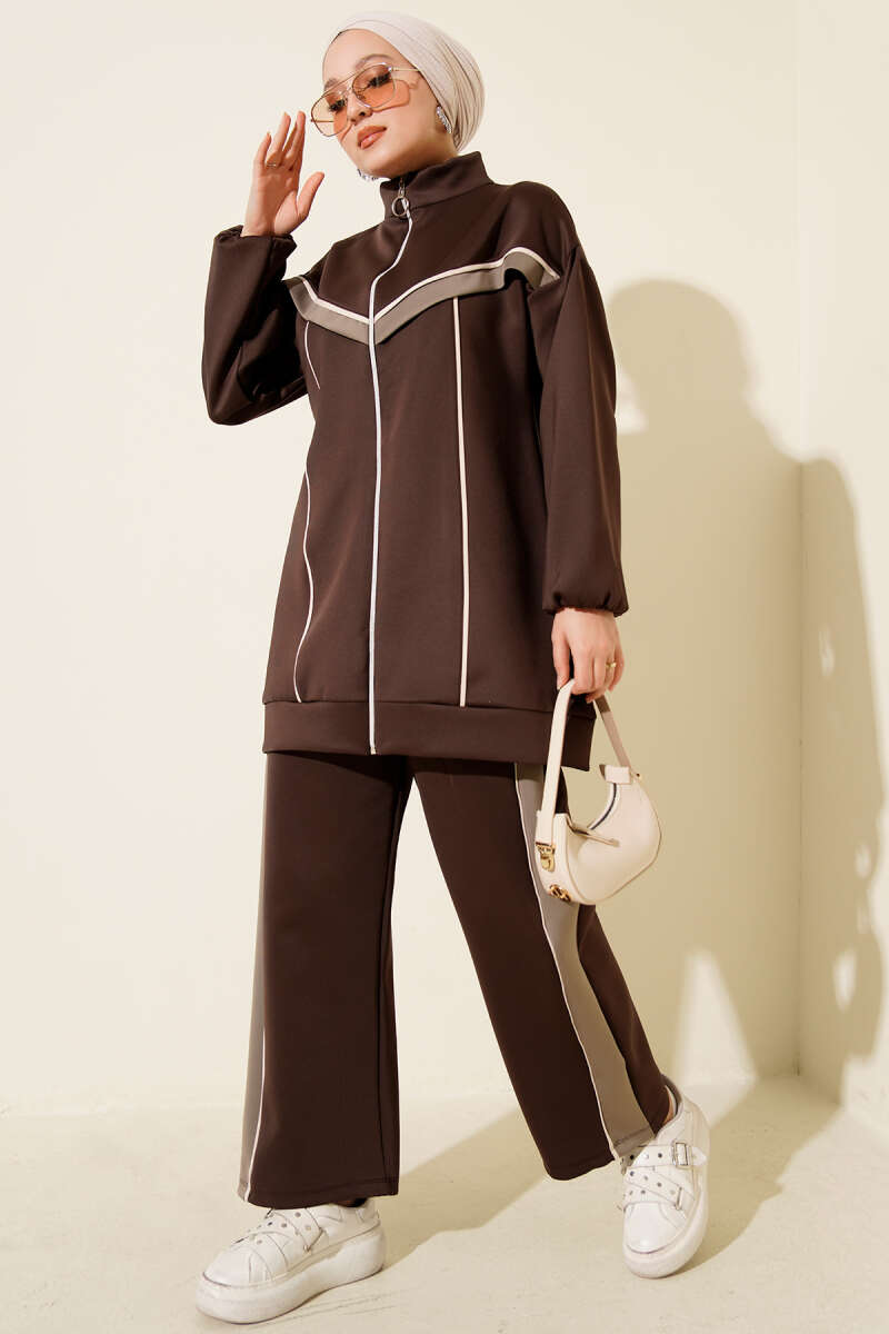 Biyeli Şeritli Scuba İkili Takım Kahve