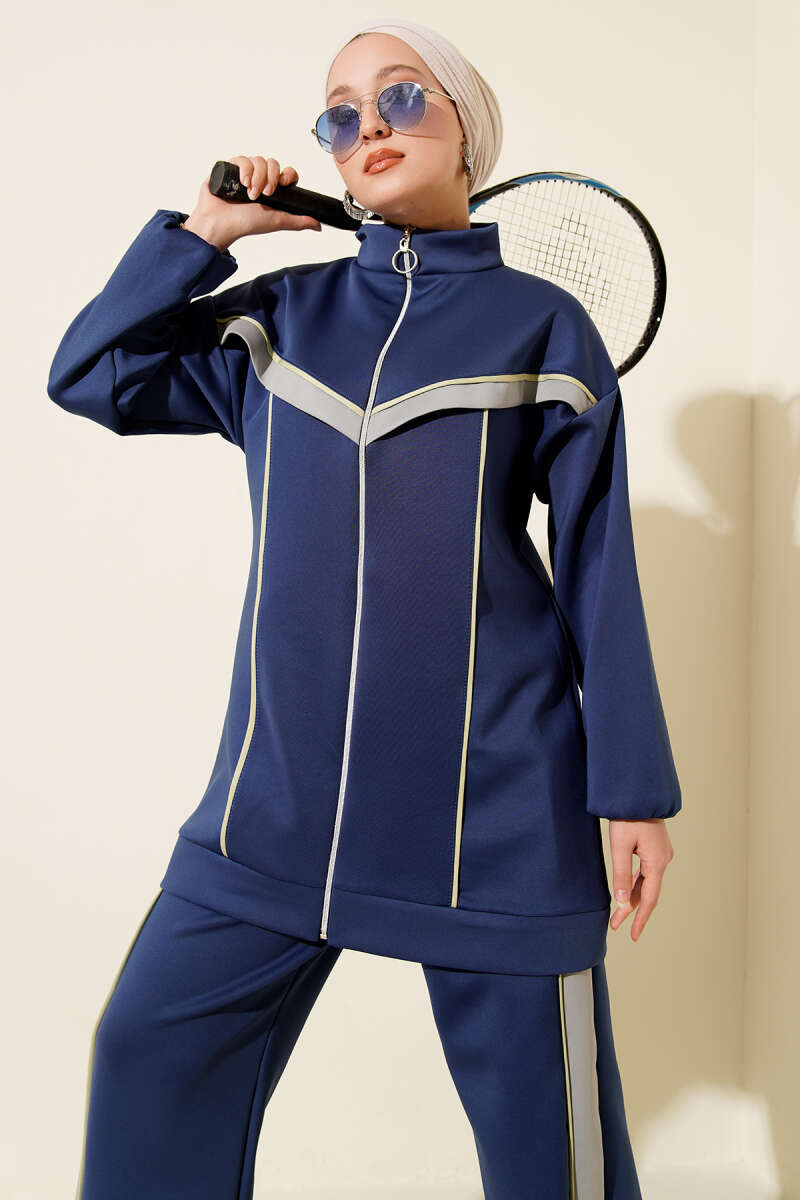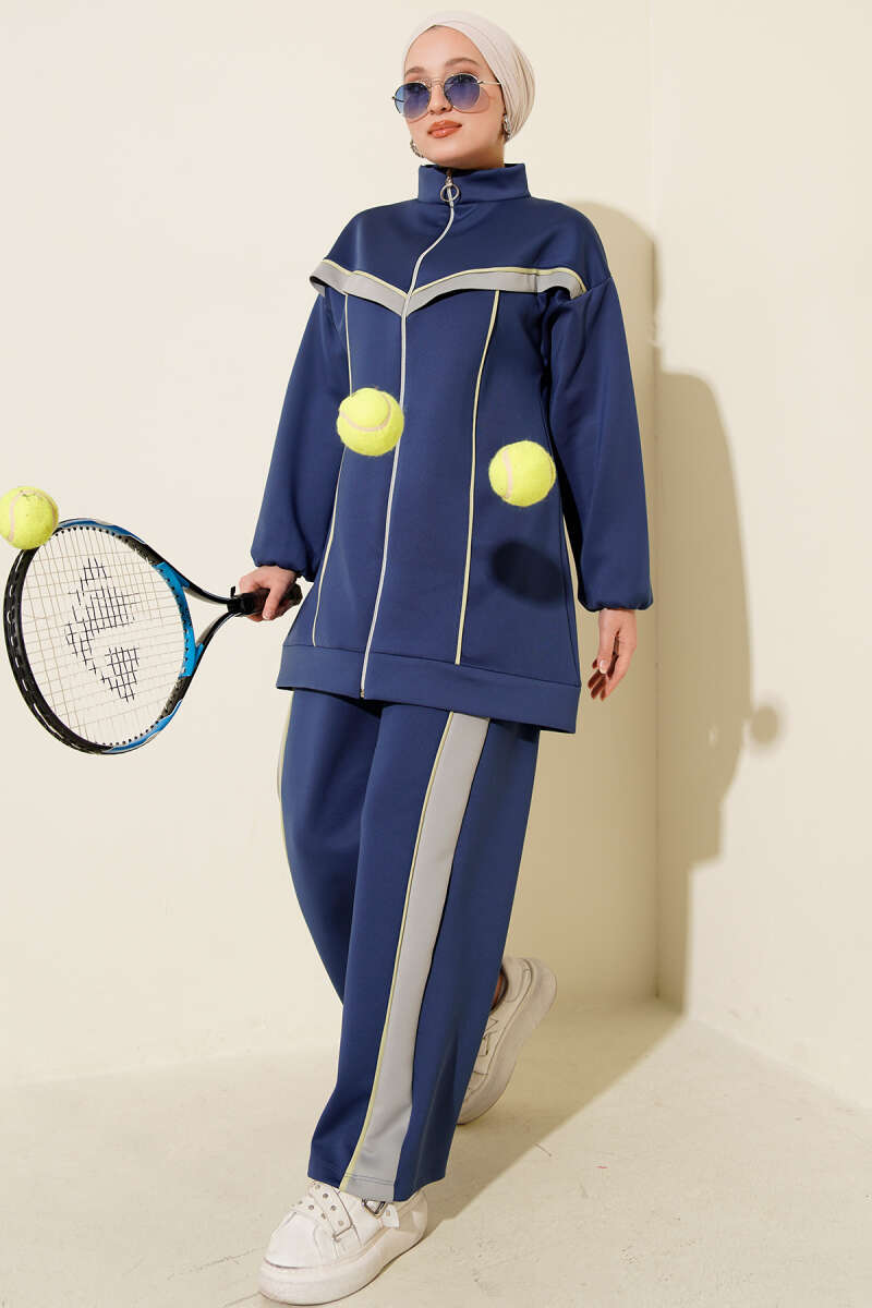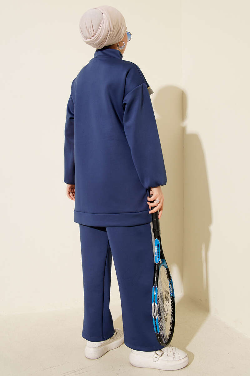 Yaka Kürklü Fermuarlı Triko İkili Takım Lacivert