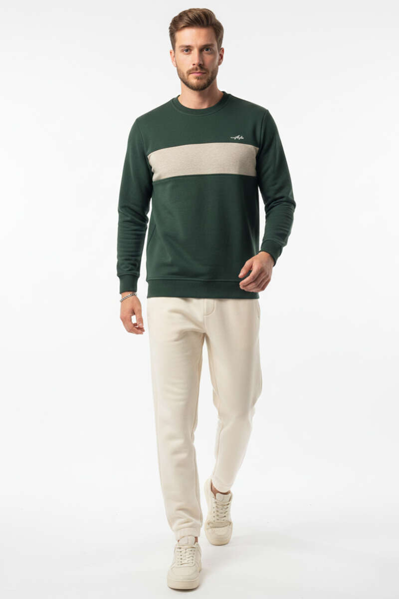 Blok Renkli Selanik Erkek Sweatshirt Nefti