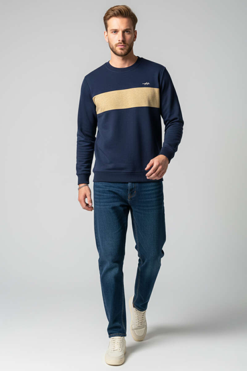 Blok Renkli Selanik Erkek Sweatshirt Parlement
