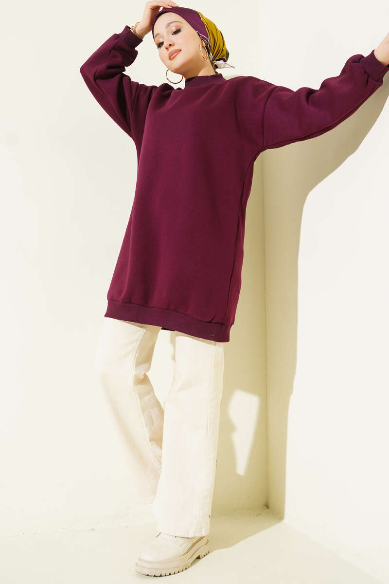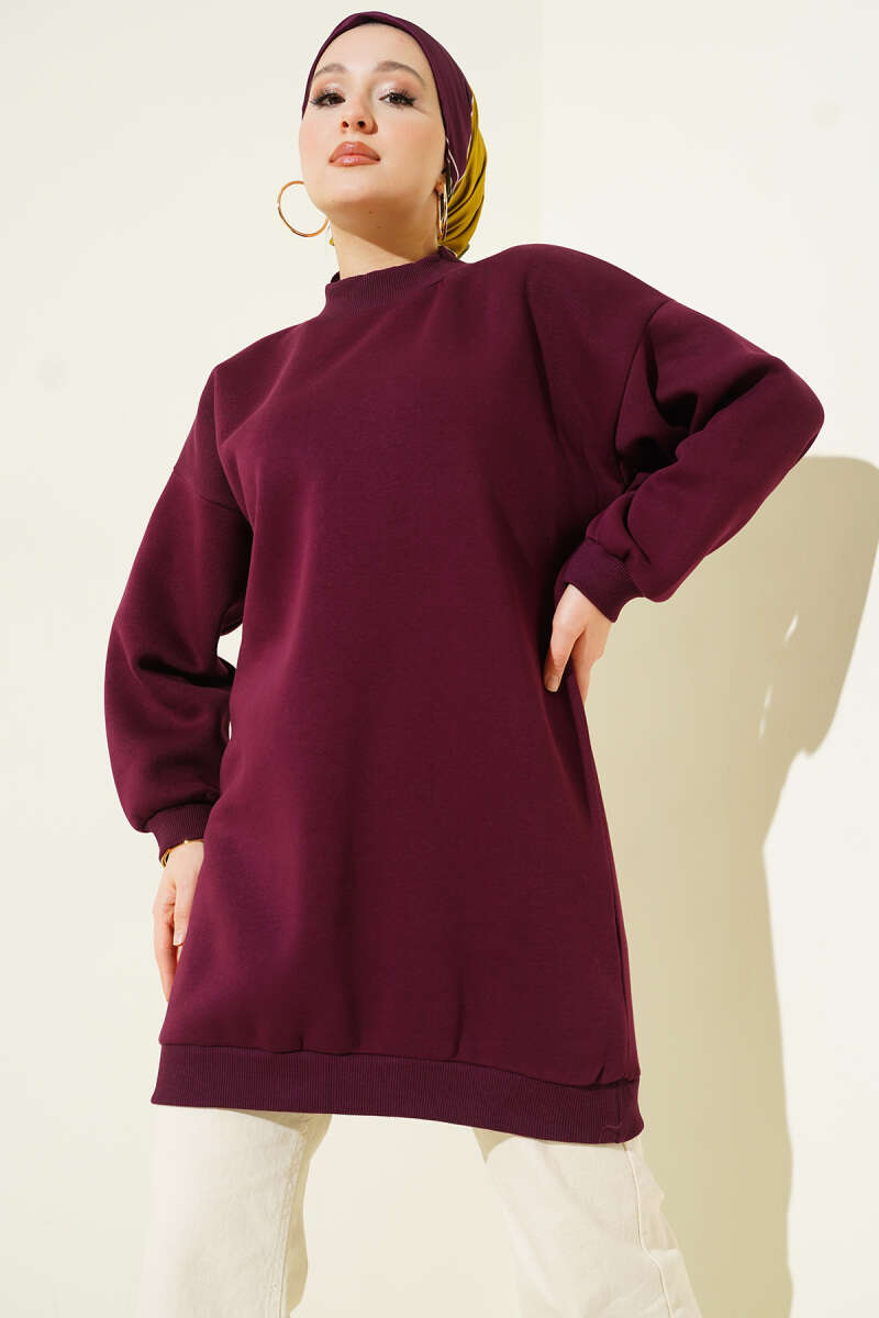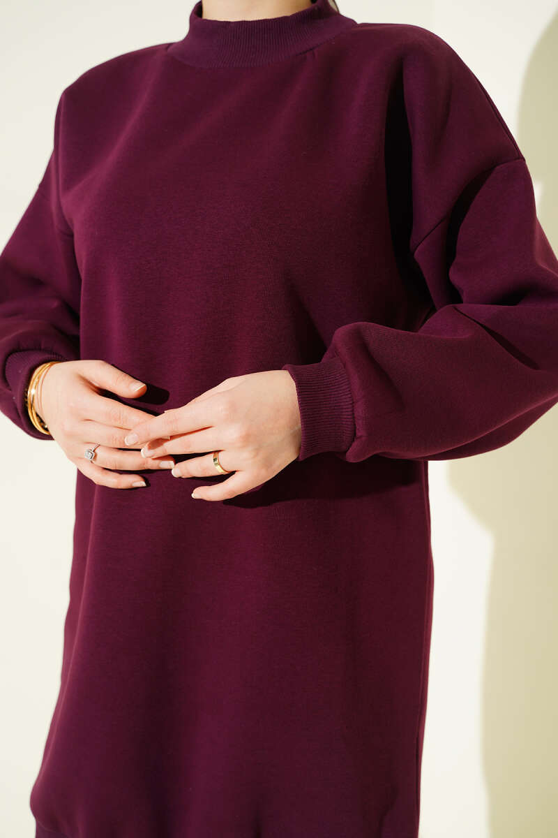 Basic Bisiklet Yaka Düz Triko Tunik Vizon