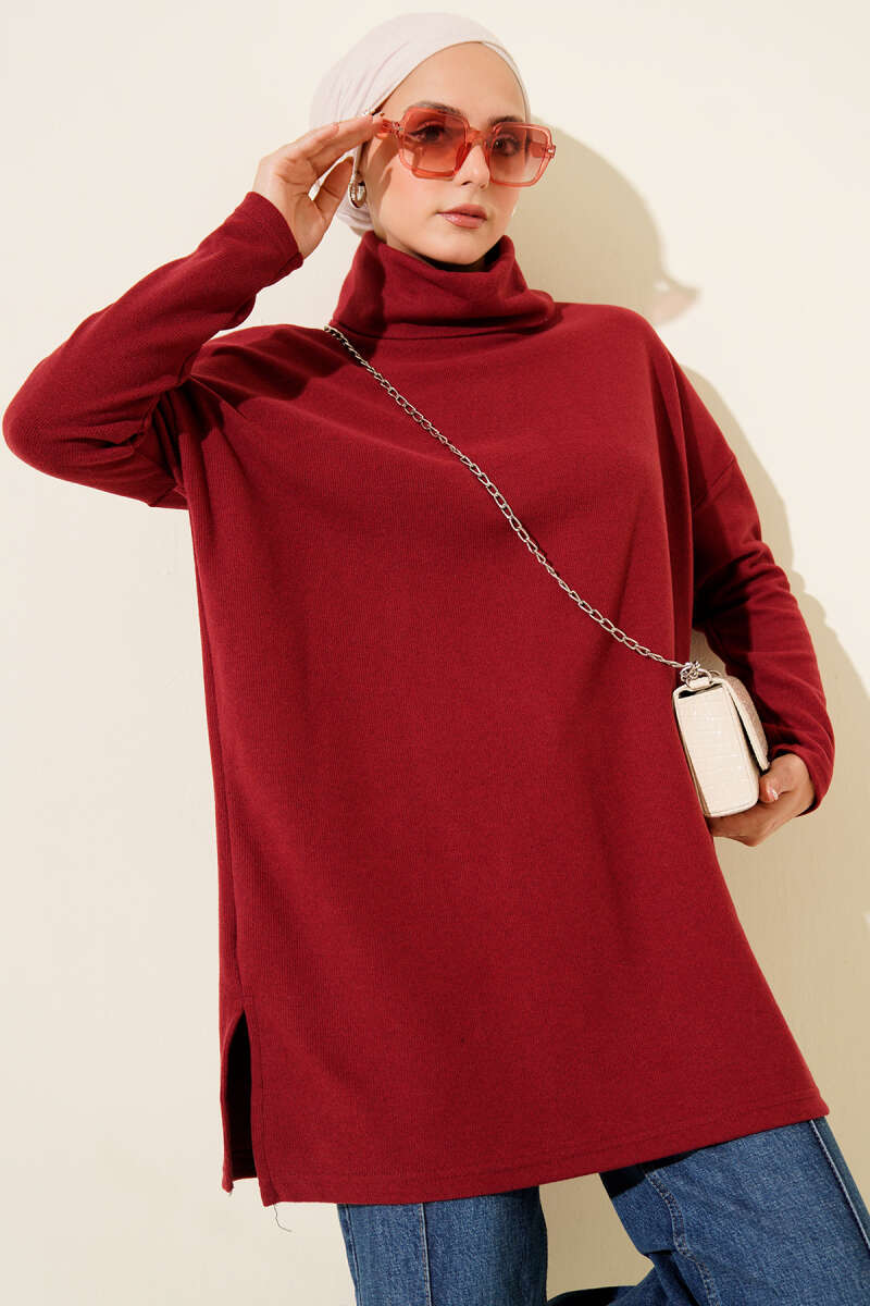 Düşük Omuz Salaş Triko Tunik Turkuaz