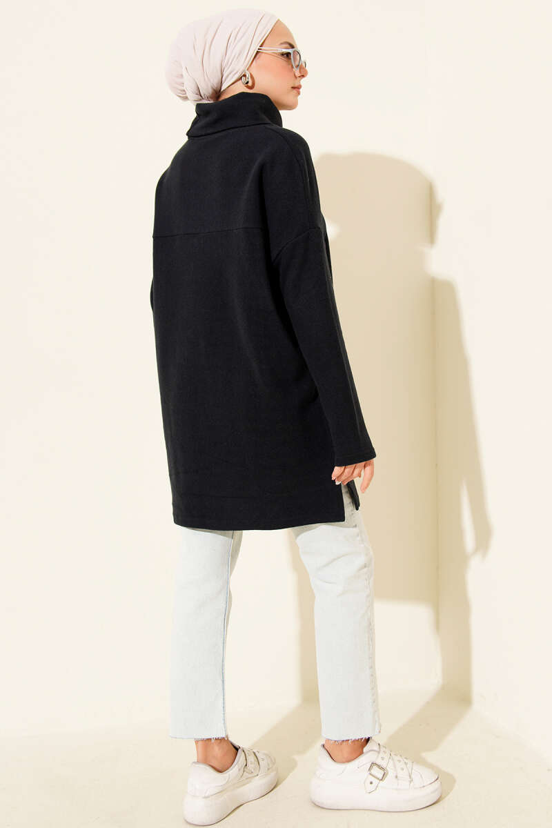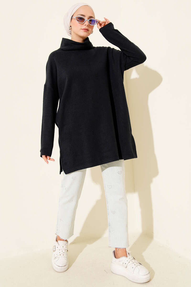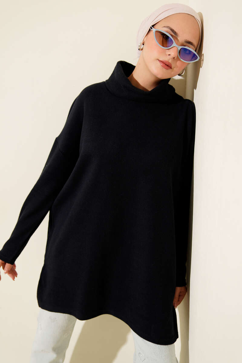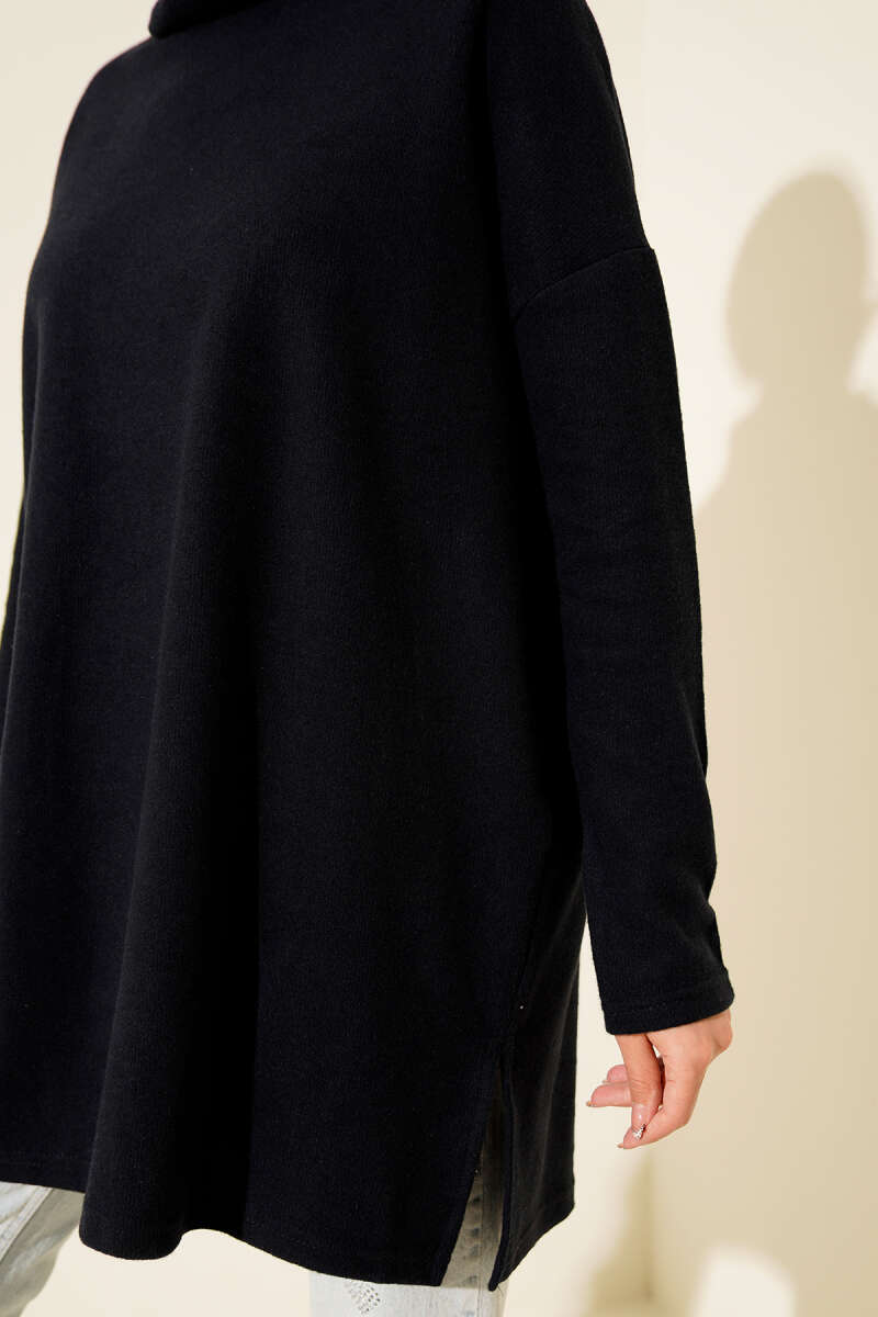 Düşük Omuz Salaş Triko Tunik Siyah
