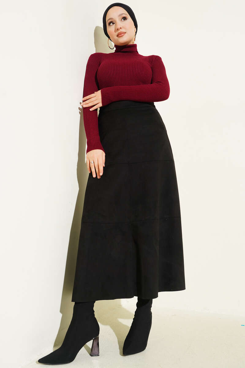 Boğazlı Fitilli Triko Kazak Siyah
