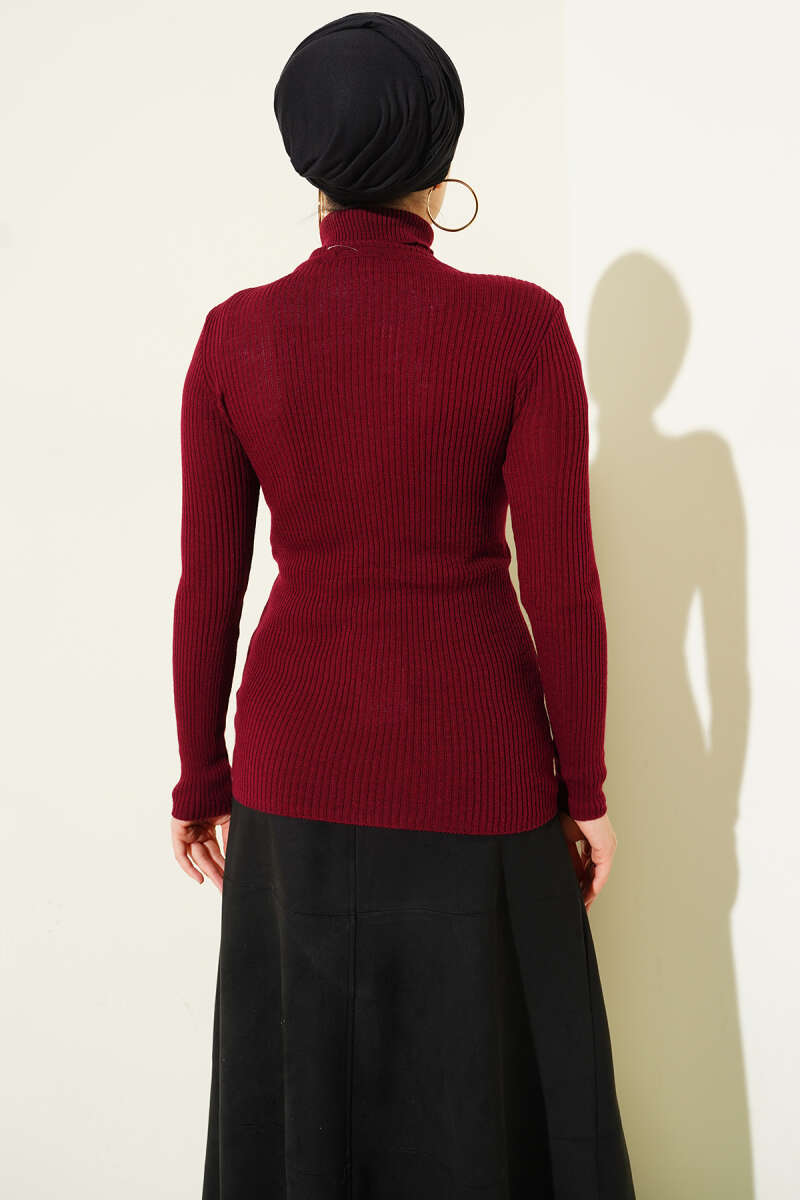 Boğazlı Parmak Geçirmeli Triko Kazak Bordo