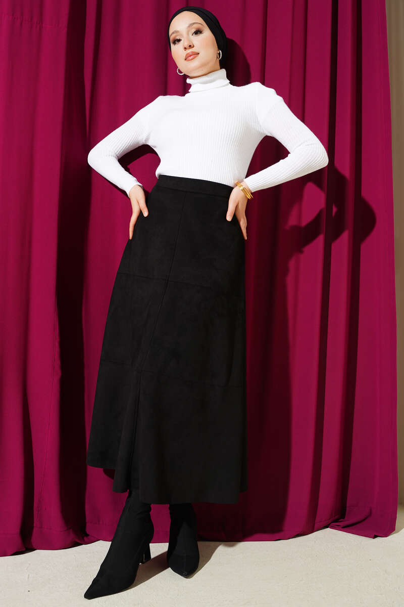 Boğazlı Parmak Geçirmeli Triko Kazak Siyah