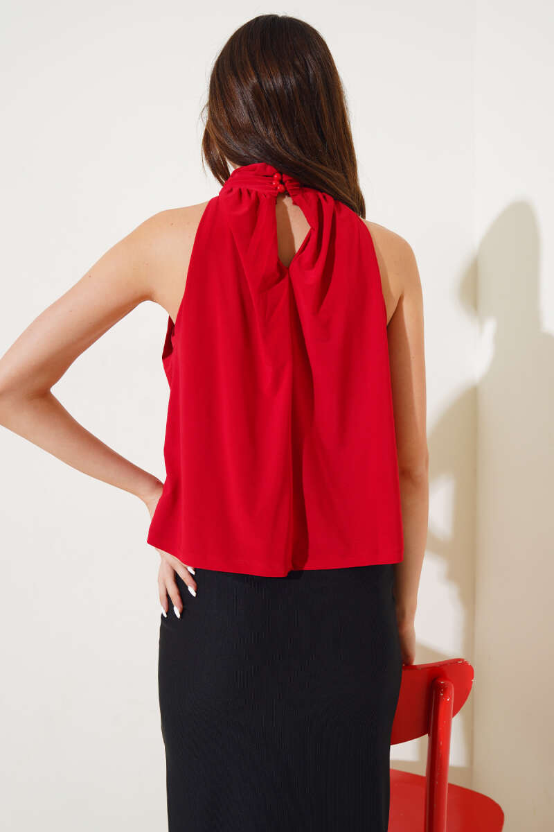 Boğazlı Kolsuz Sandy Bluz Kırmızı