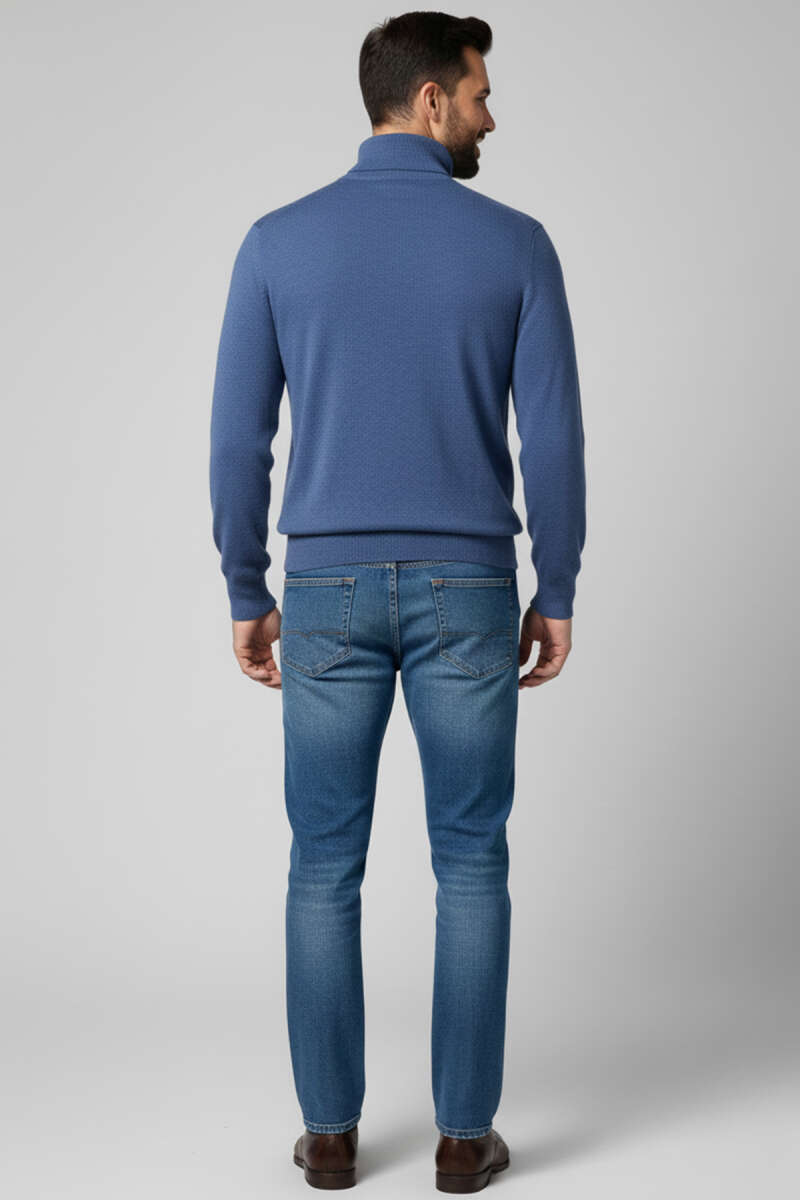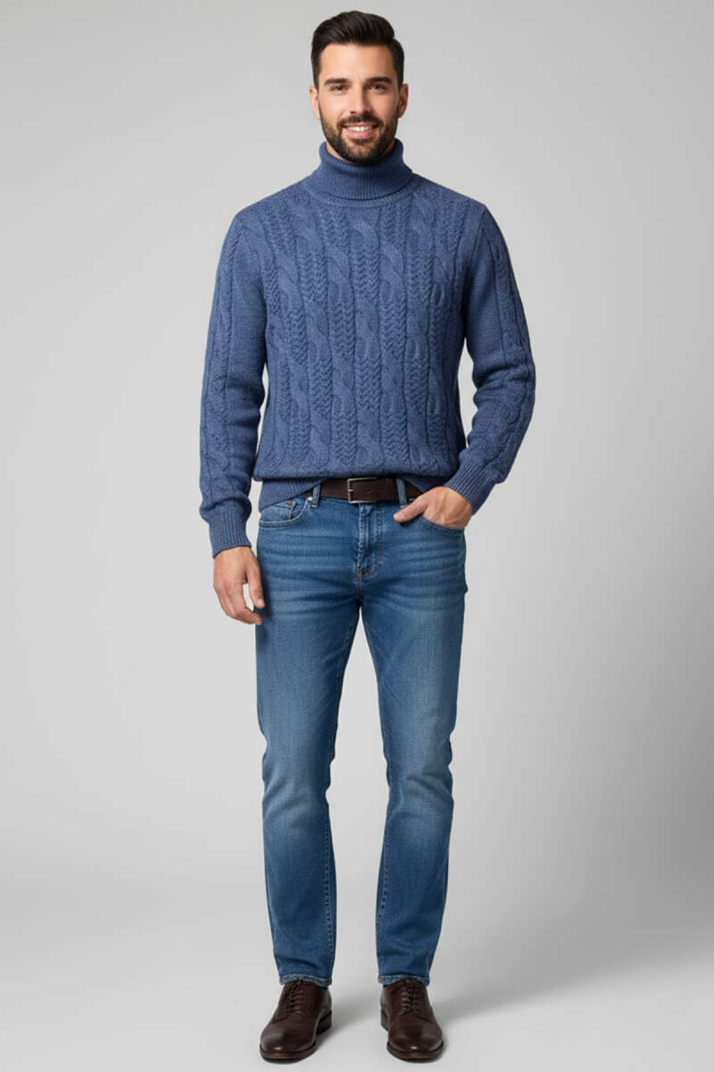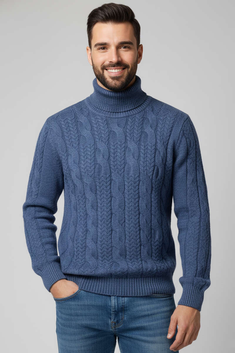 Yarım Balıkçı Örgü Triko Erkek Kazak Taş