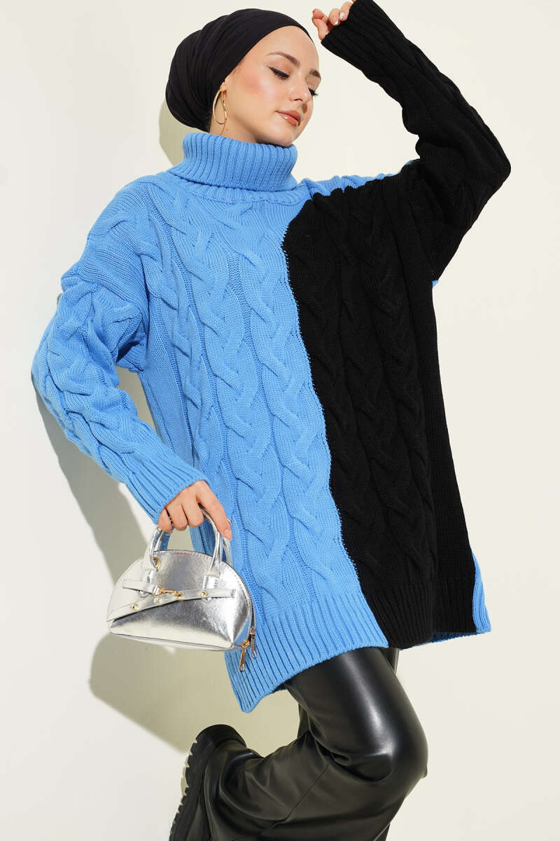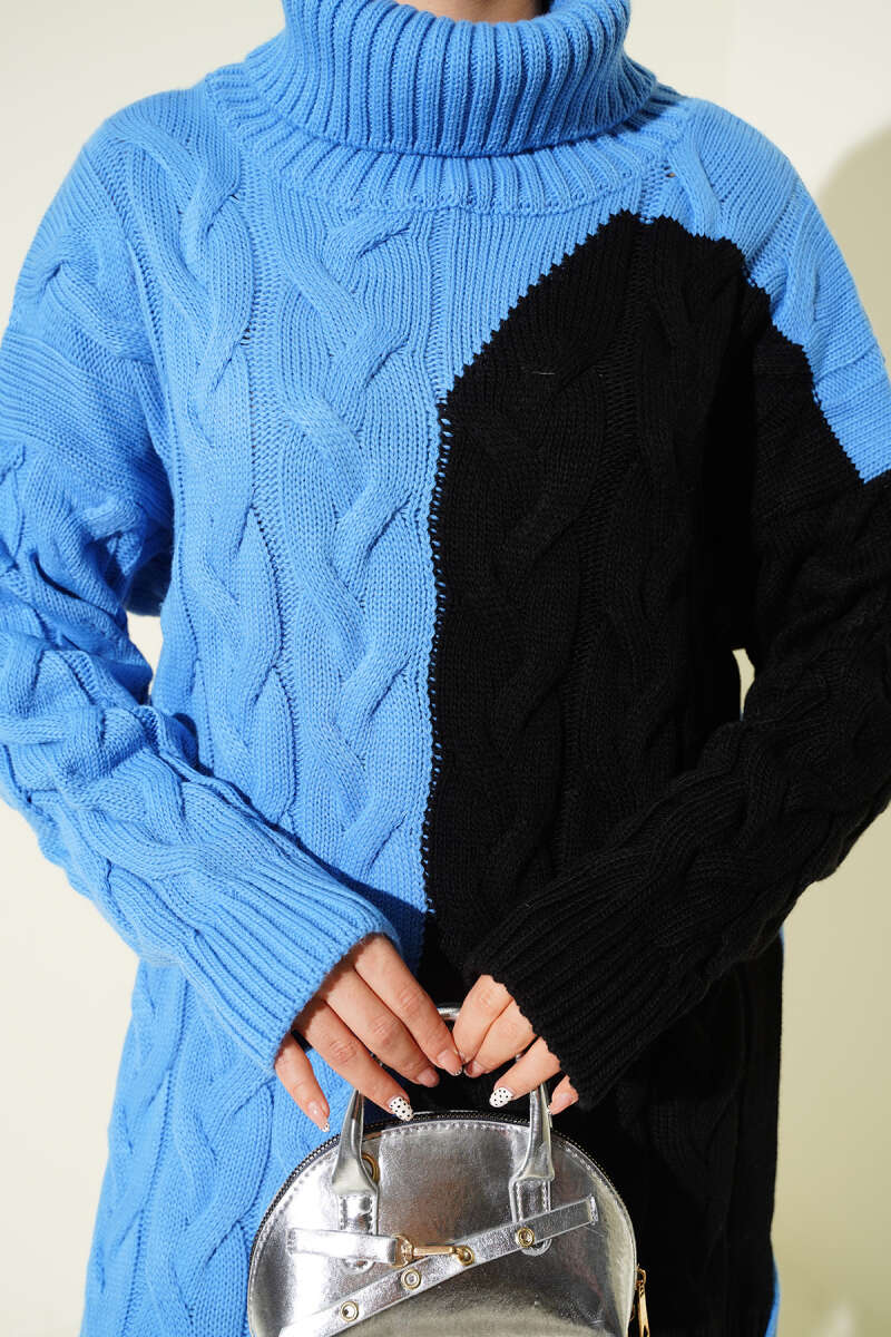 Boğazlı Örgü Kabartmalı Triko Tunik Siyah