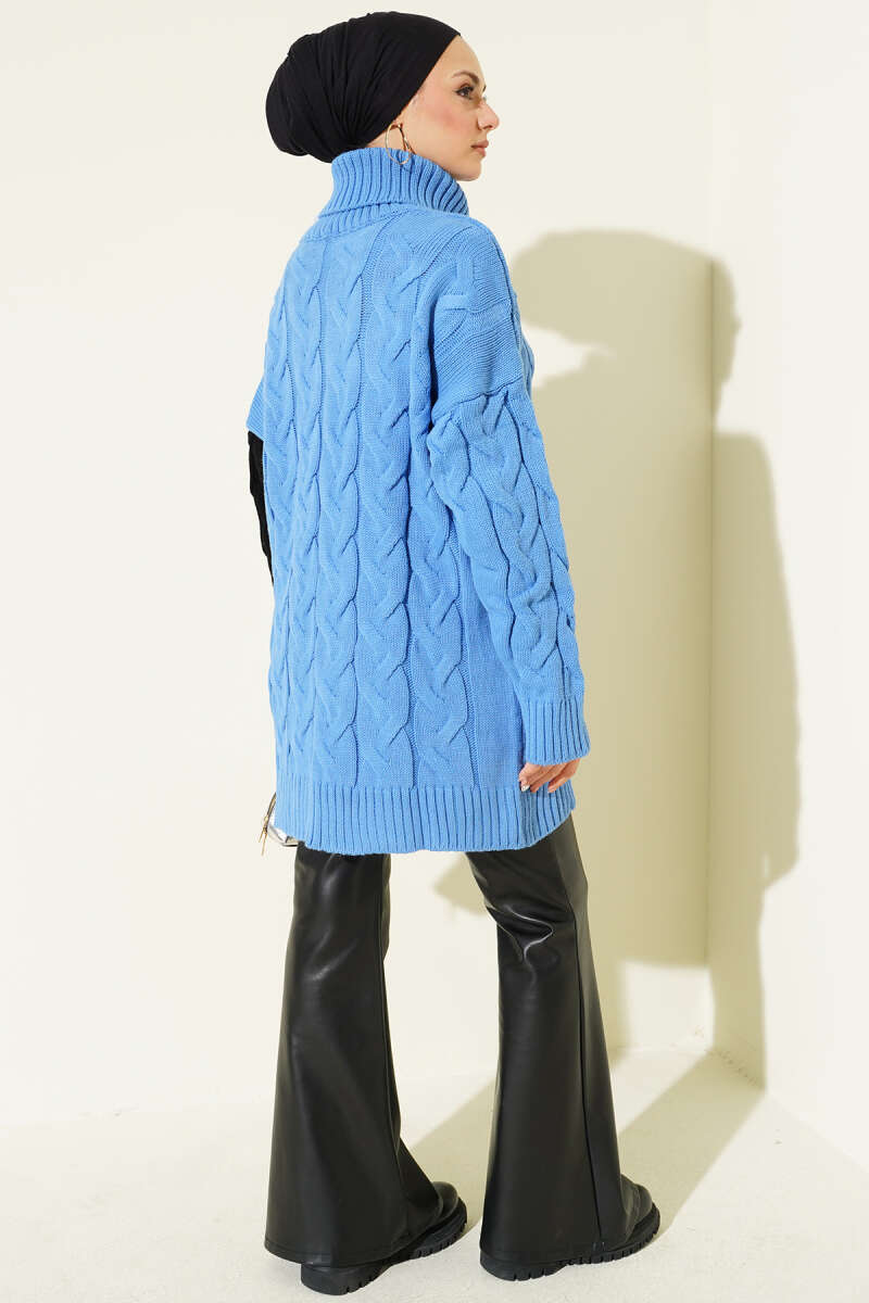 Boğazlı Örgü Kabartmalı Triko Tunik Füme