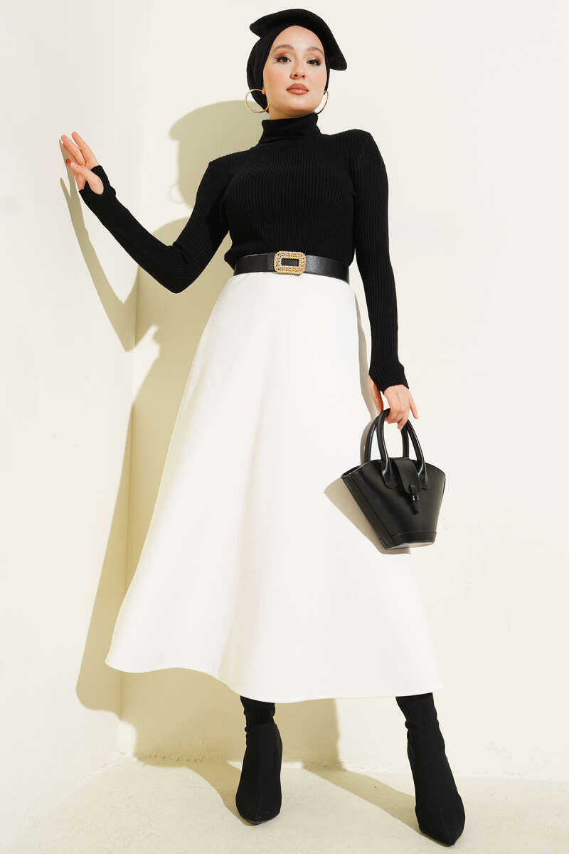 Boğazlı Fitilli Triko Kazak Ekru