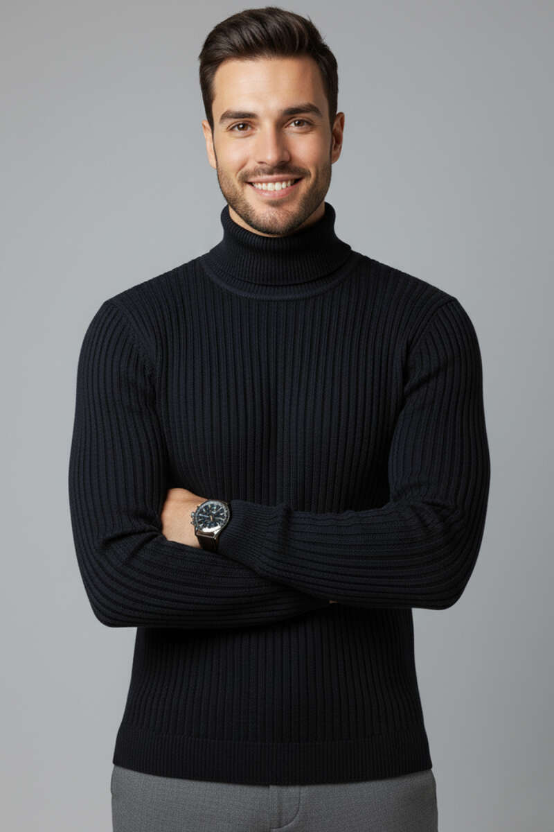Yarım Fermuarlı Örgü Erkek Triko Kazak Siyah