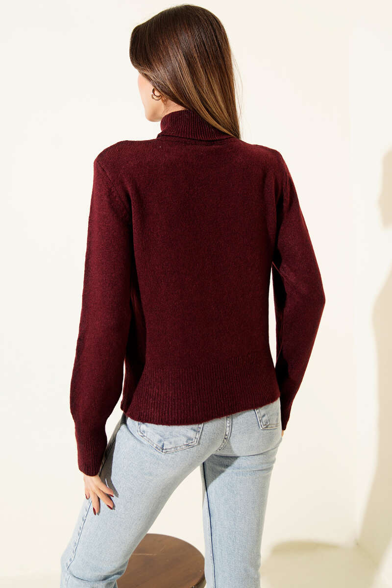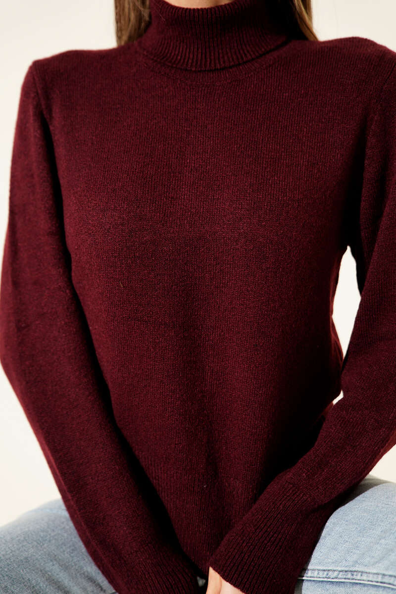 Fitilli Tam Balıkçı Yaka Triko Kazak Pembe