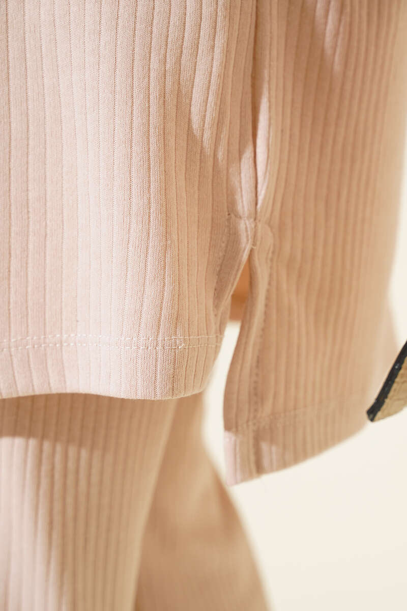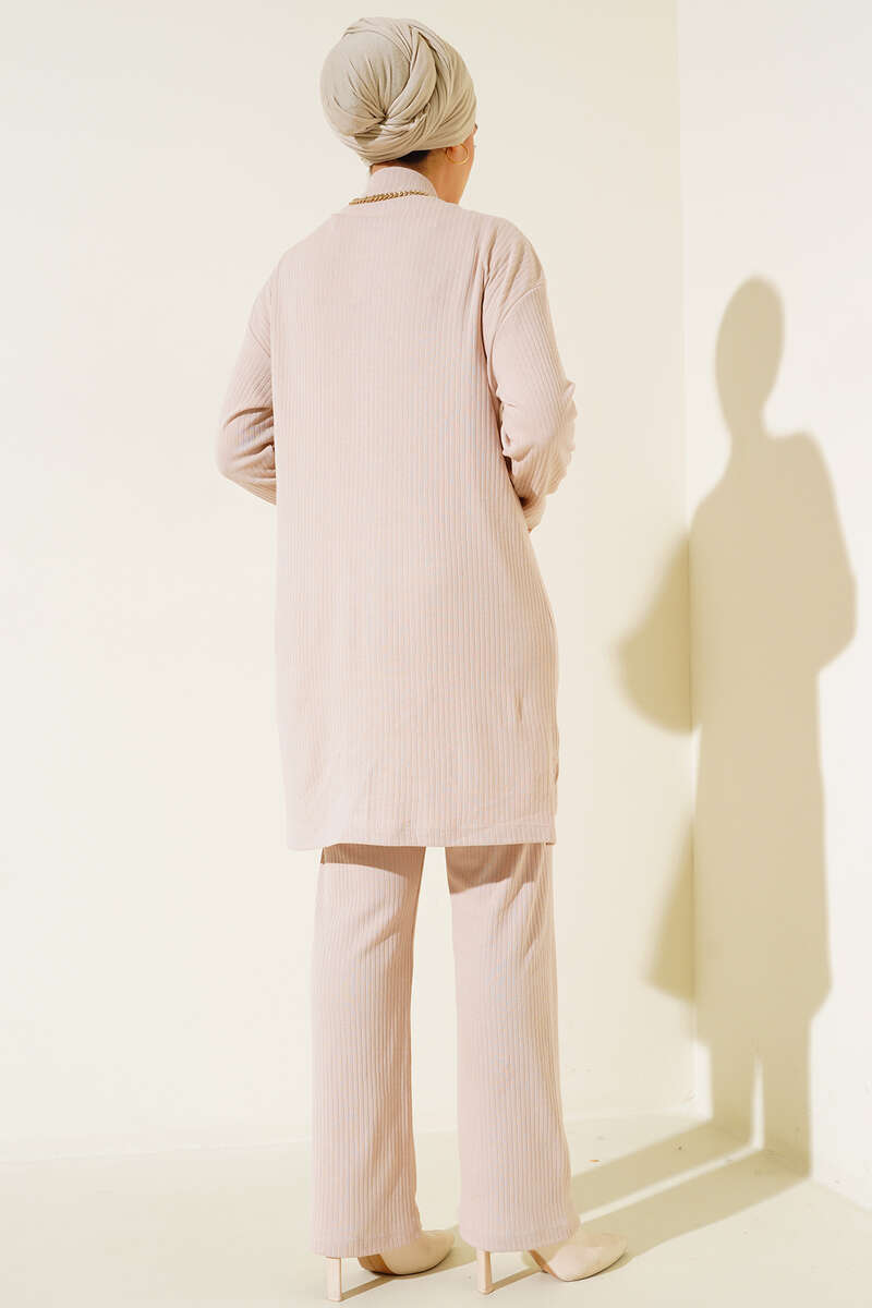 Boğazlı Yırtmaçlı İkili Takım Bej