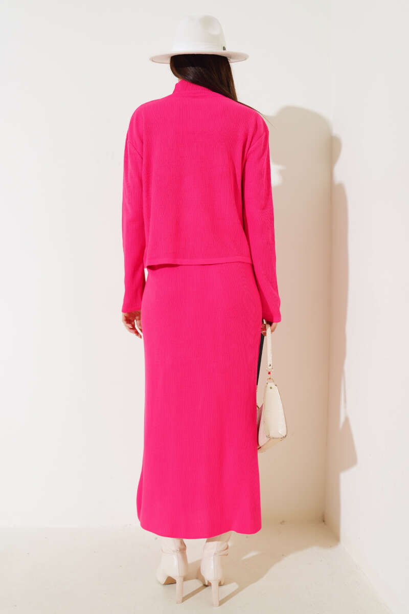 Saç Örgü Fırfırlı Triko Body Fuşya