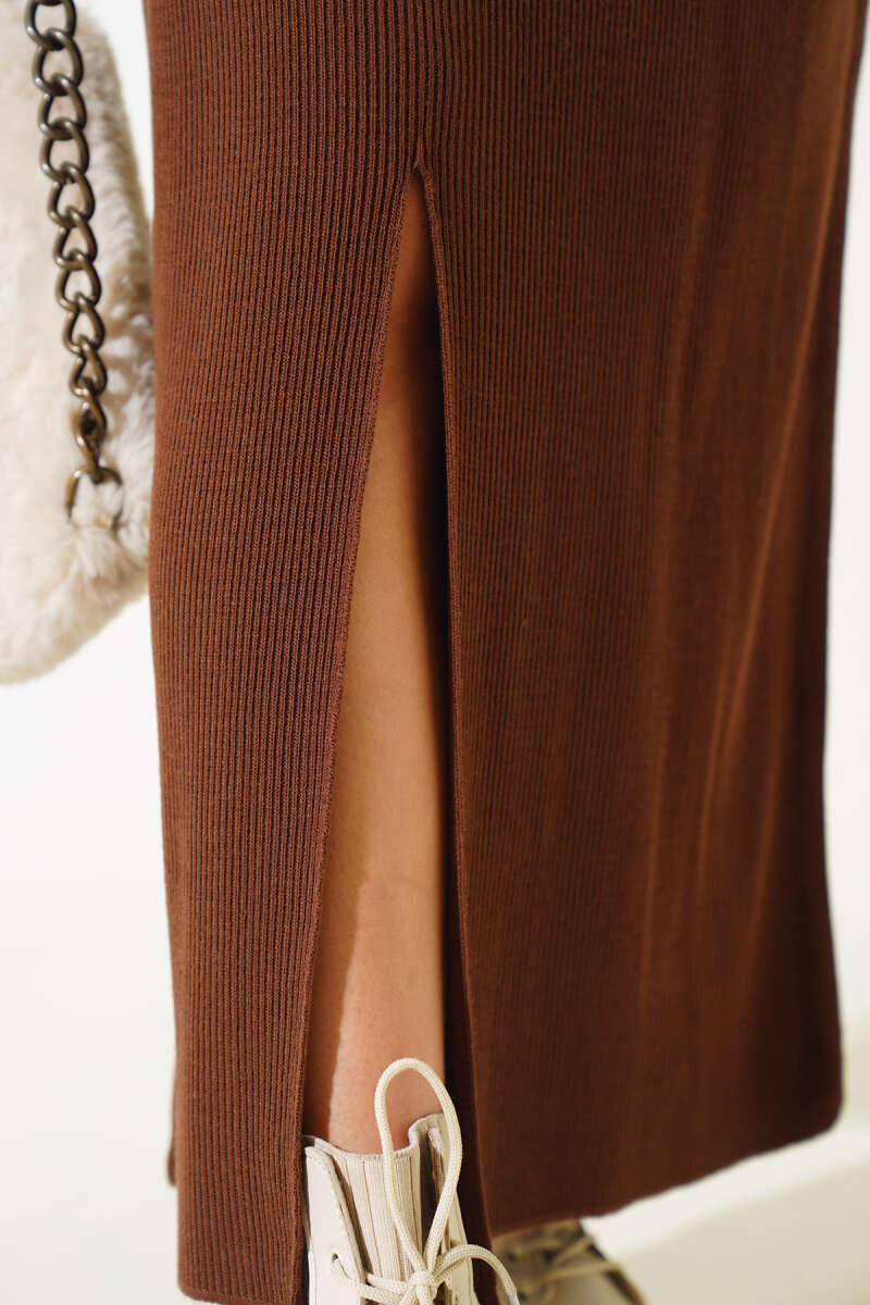 İnci Süslemeli Etekli Triko İkili Takım Kahve