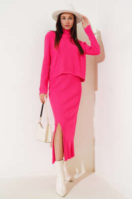 Saç Örgü Fırfırlı Triko Body Fuşya