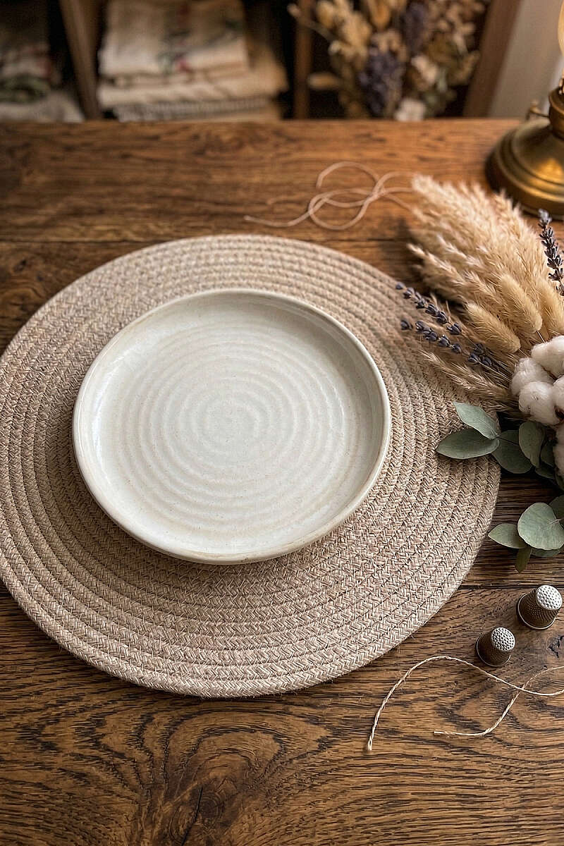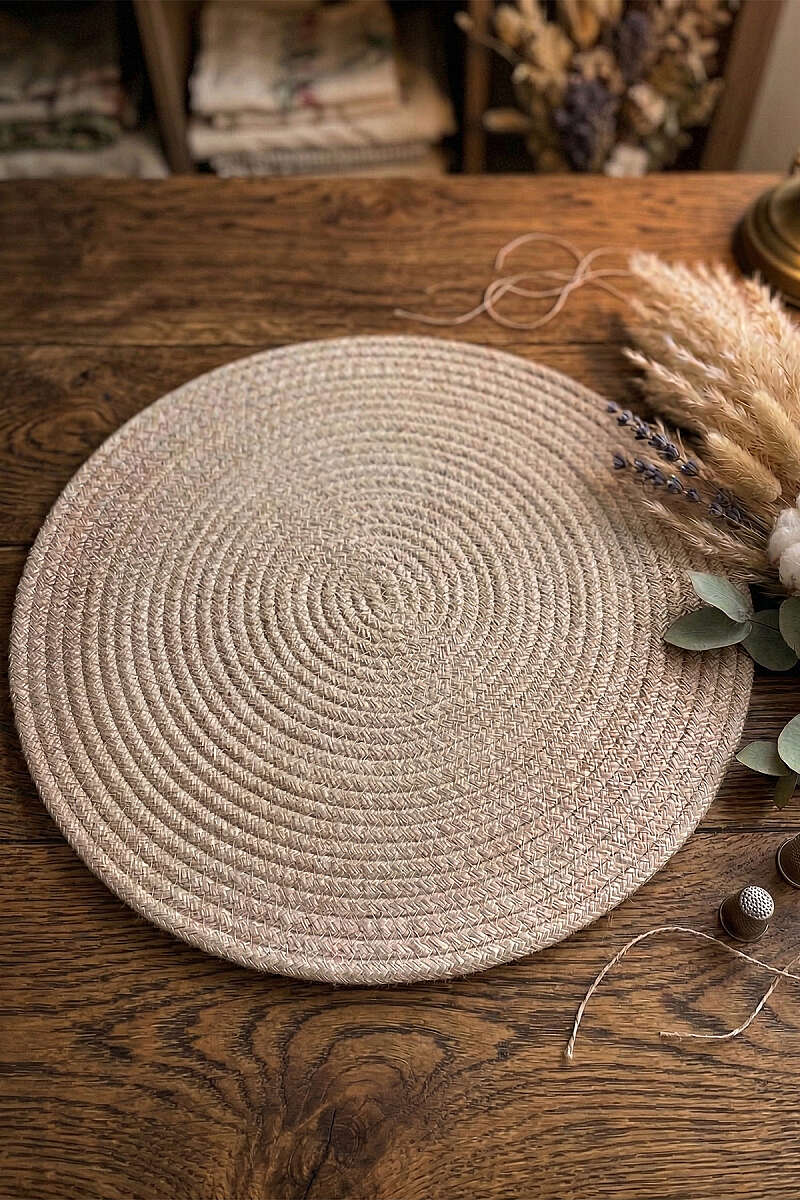 Doğallığı ve zarafeti sofranızda buluşturun! El emeği görünümüyle sıcak bir atmosfer yaratan bu jüt/pamuk karışımlı örgü servis, kahvaltılarınızdan şık akşam yemeklerinize kadar her ana eşlik etmek için tasarlandı.