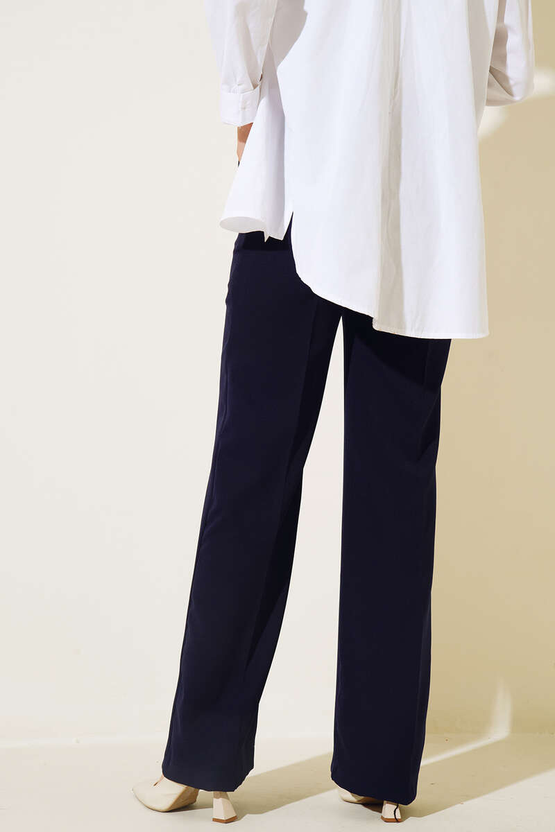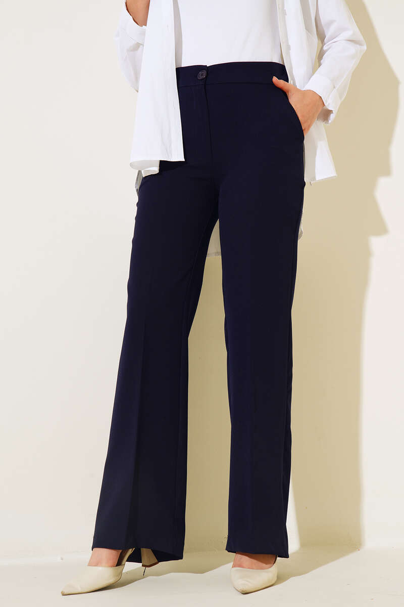 Yeni sezon pantolonumuzun şık duruşu gözleri üzerine topluyor. İki adet yan cebi kullanılabilmektedir. Düğmeli ve fermuarlı model olan pantolonumuz bol paçadır.