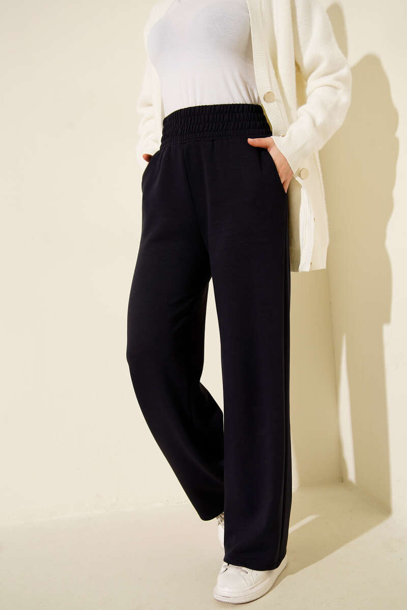 Bol Paça Geniş Bel Lastikli Pantolon Lacivert