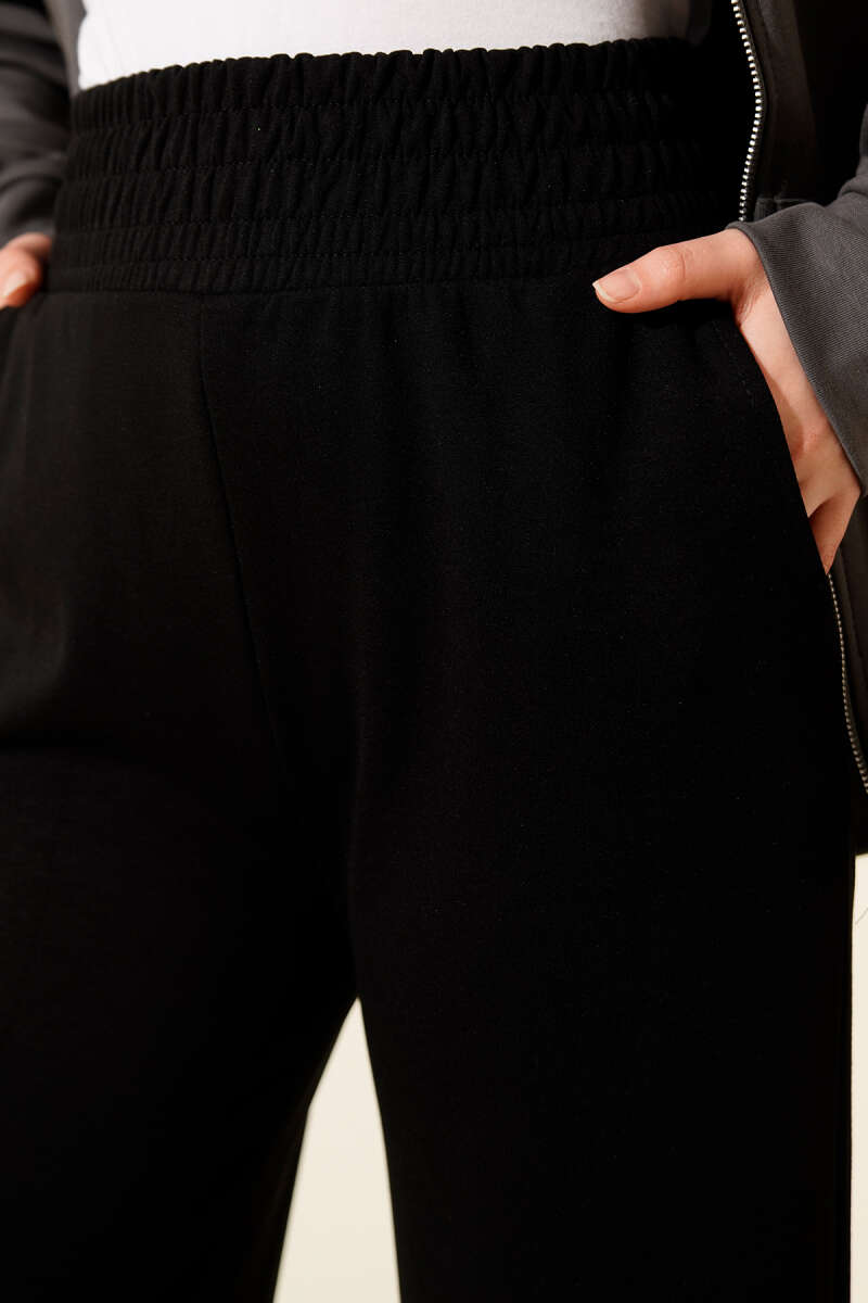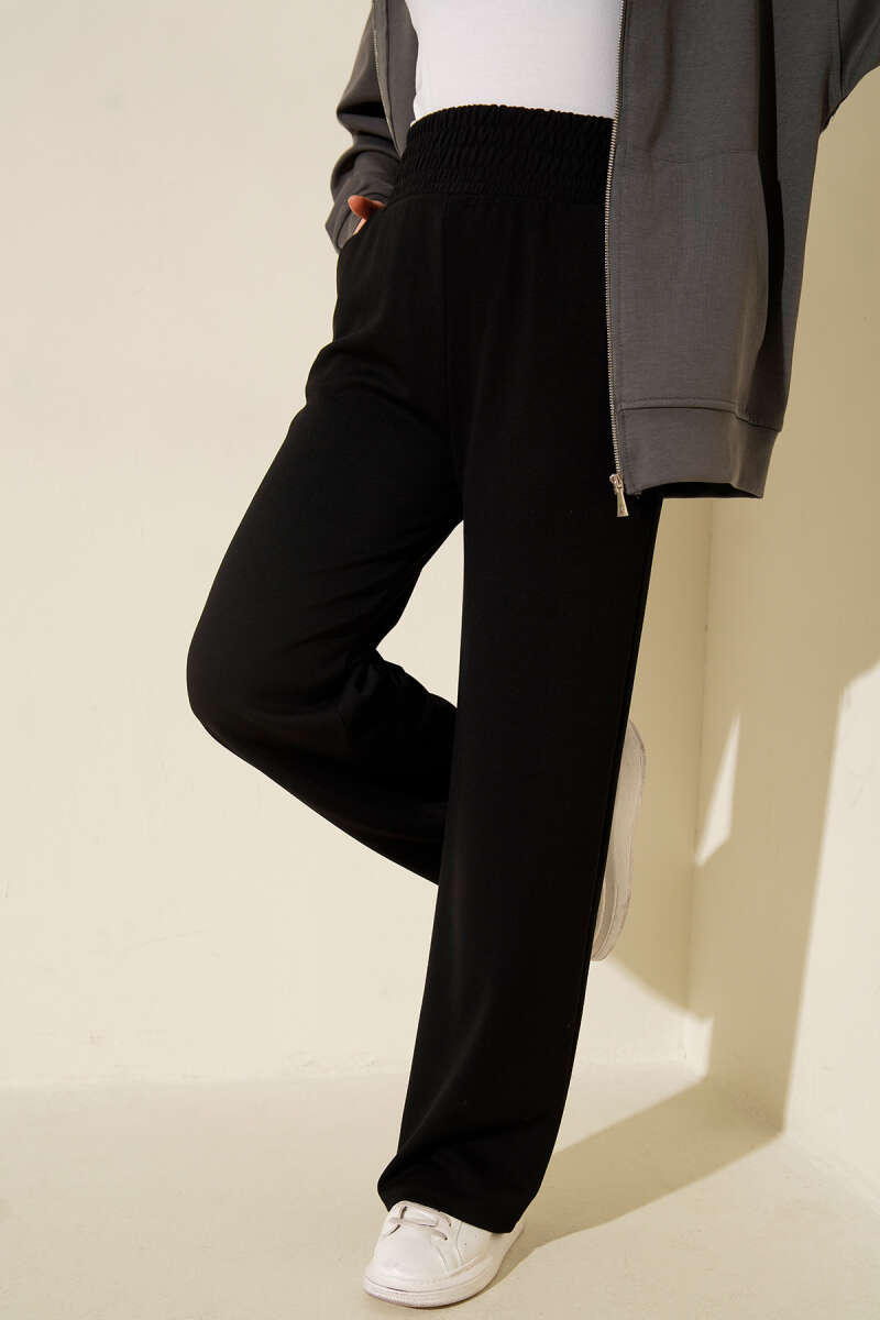 Bol Paça Geniş Bel Lastikli Pantolon Siyah