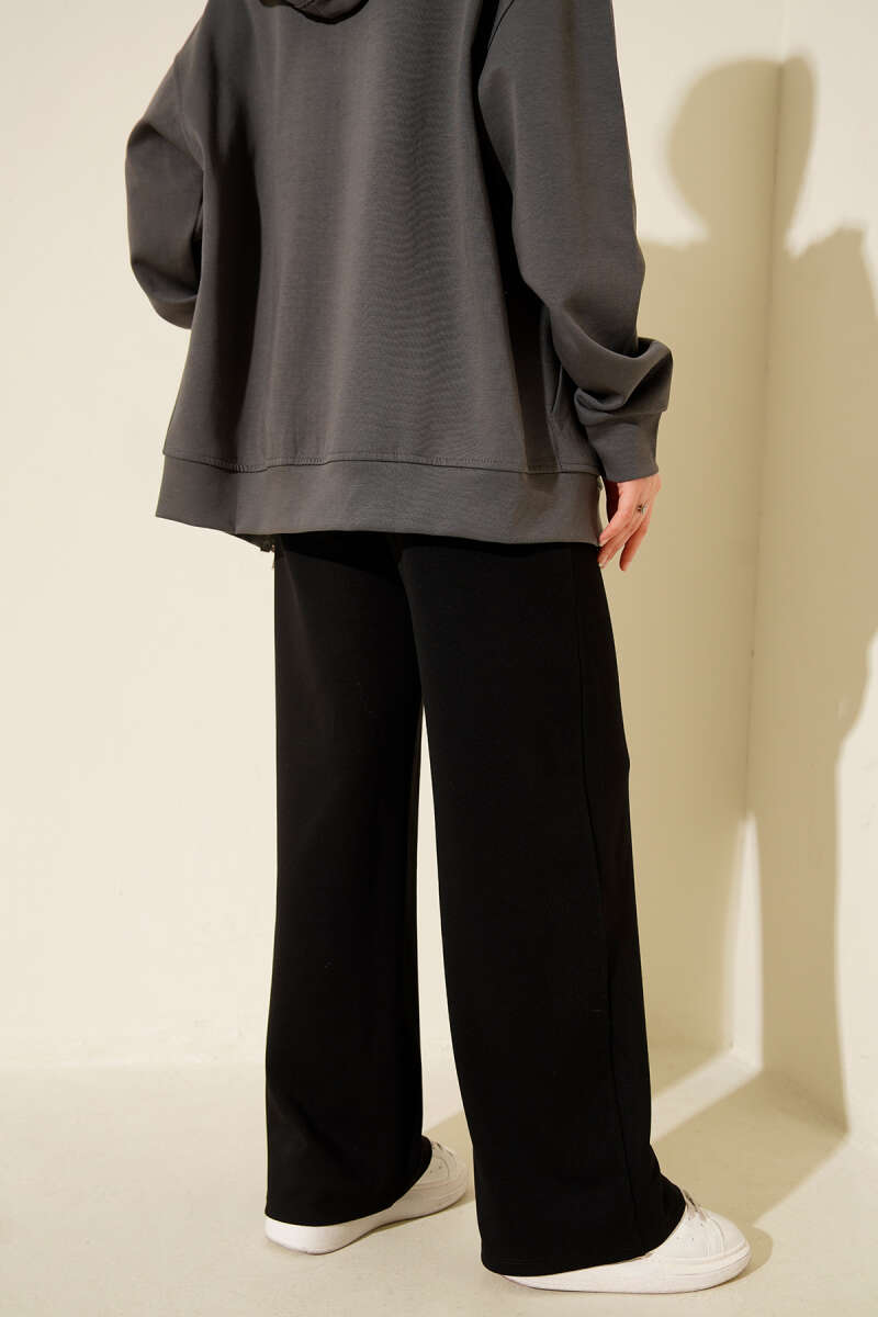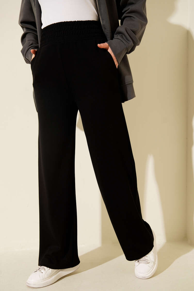 Bol Paça Geniş Bel Lastikli Pantolon Siyah