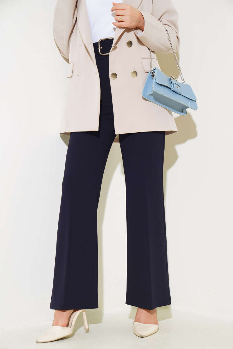 Bol Paça Kemerli Salaş Pantolon Lacivert