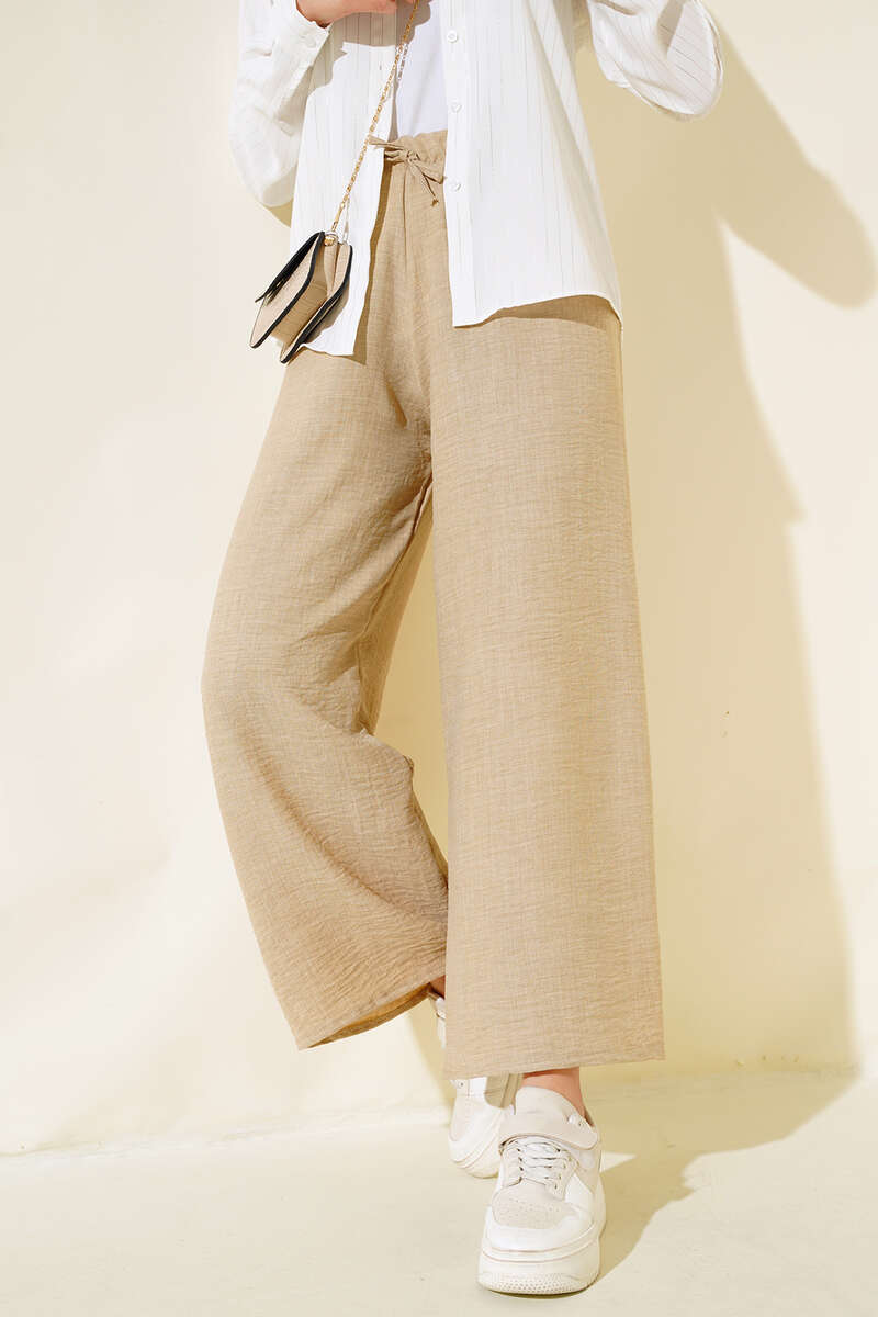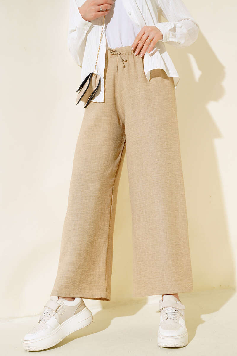 Yeni sezon pantolonumuz şık ve sade tasarımıyla sizler için tasarlandı. Pantolonumuz keten kumaştan oluşmuştur. Bol paçalıdır. Beli lastiklidir. Oldukça rahat yapıdadır. Her kıyafetinizle rahatlıkla kombinleyebilirsiniz. Farklı renk seçenekleri mevcuttur.
