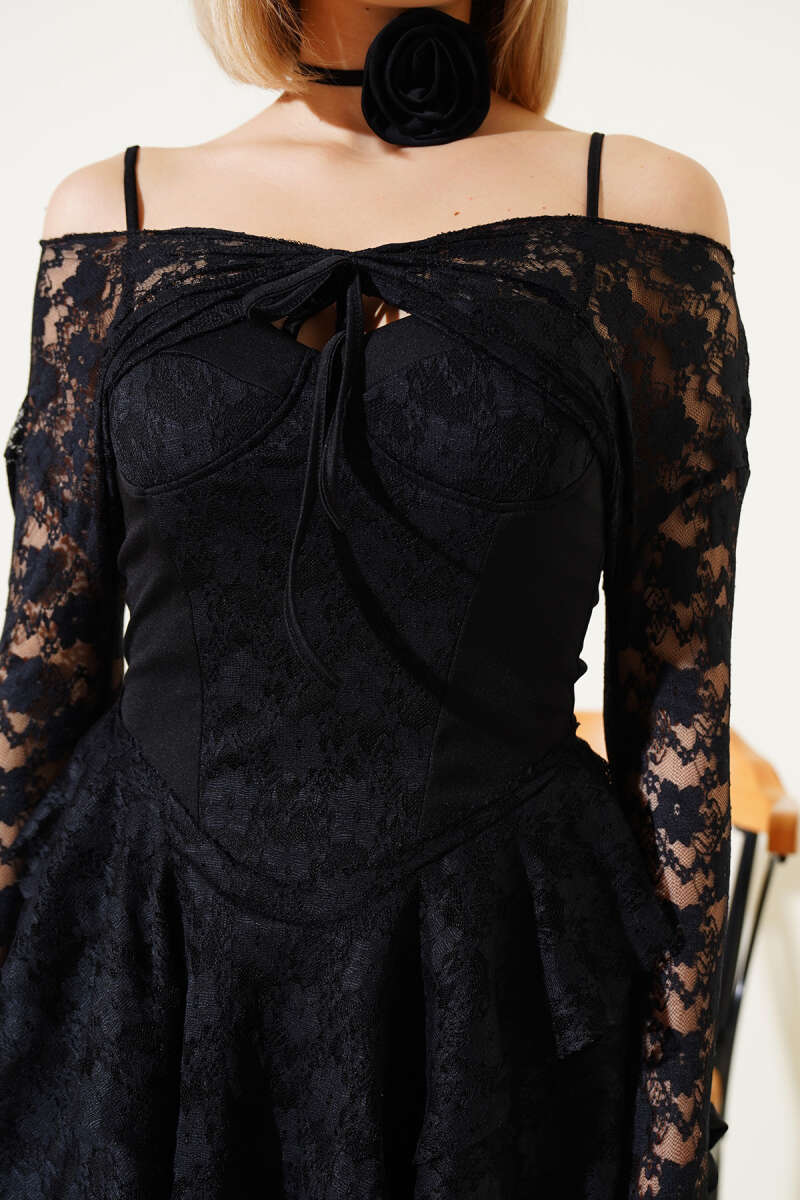 Pötikareli Yanları Büzgü Detay Siyah Tunik
