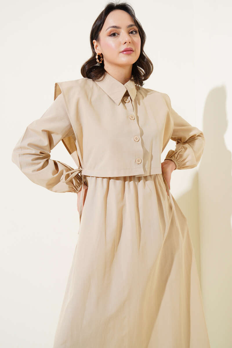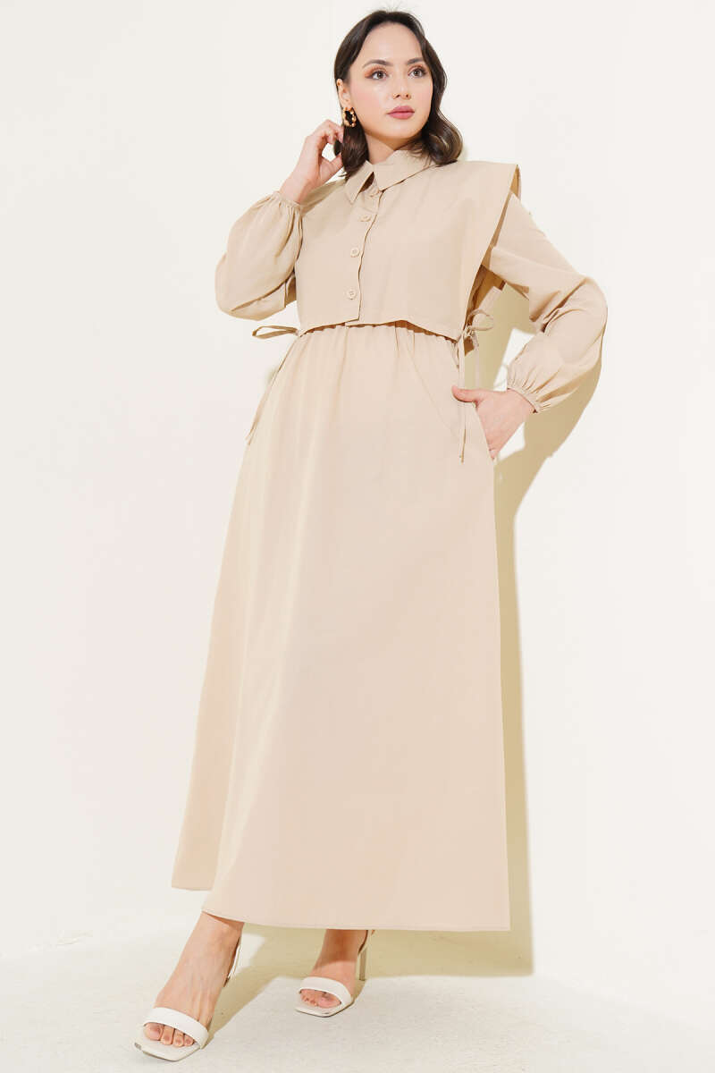 Bolerolu Terikoton Elbise Bej