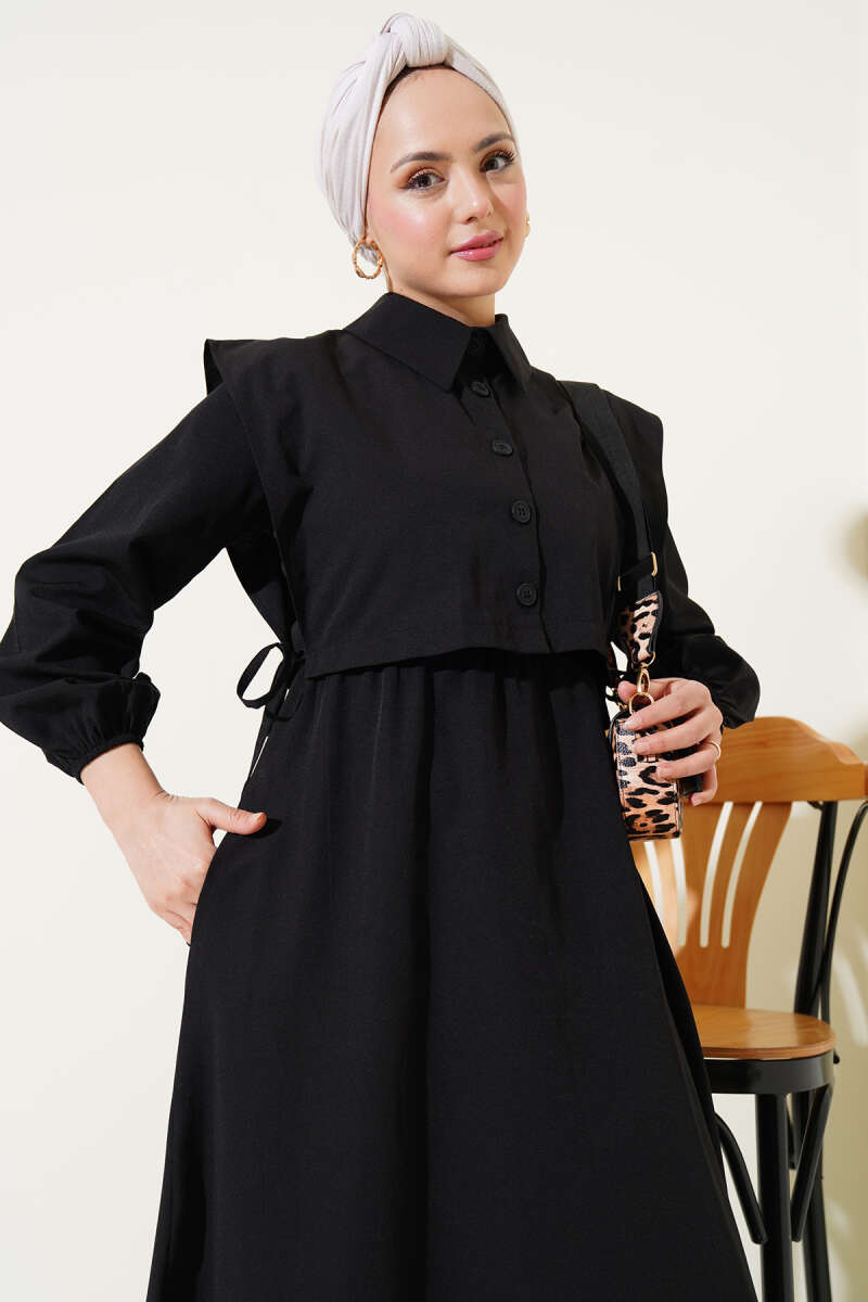 Bolerolu Terikoton Elbise Siyah