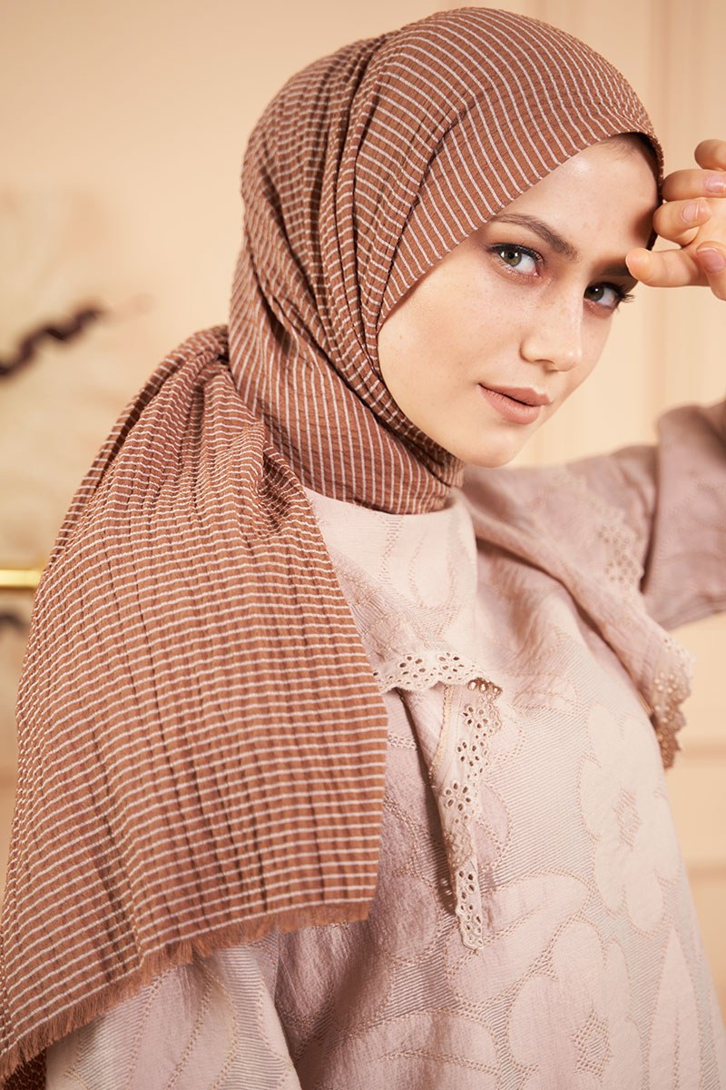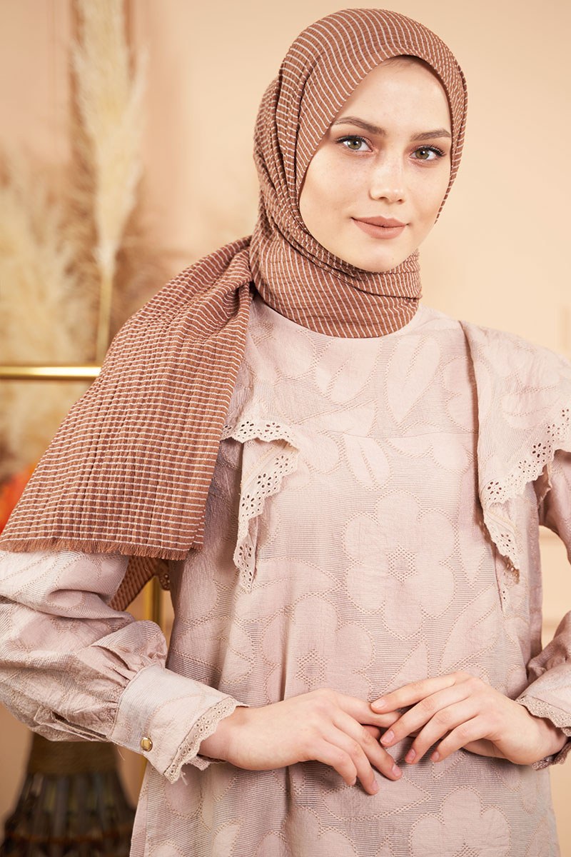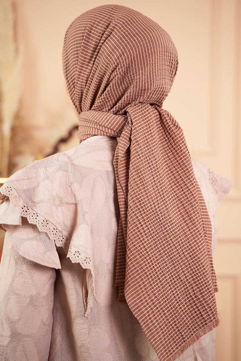 Bombe Serisi Çizgili Sütlü Kahve Şal