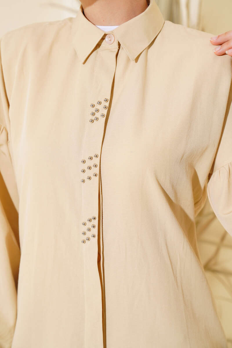 Gömlek Yaka Düğmeli Fitilli Triko Takım Büsküvi