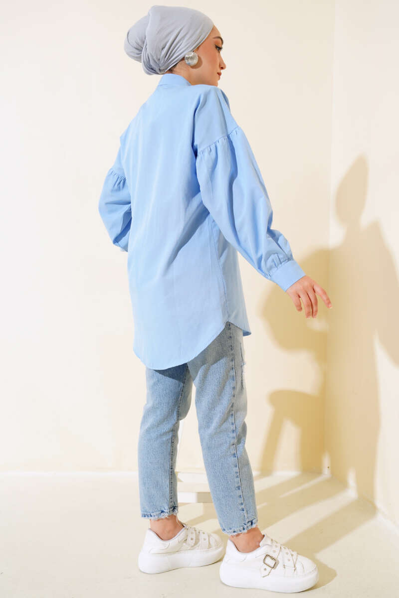 Önü Dantelli Gömlek Pudra