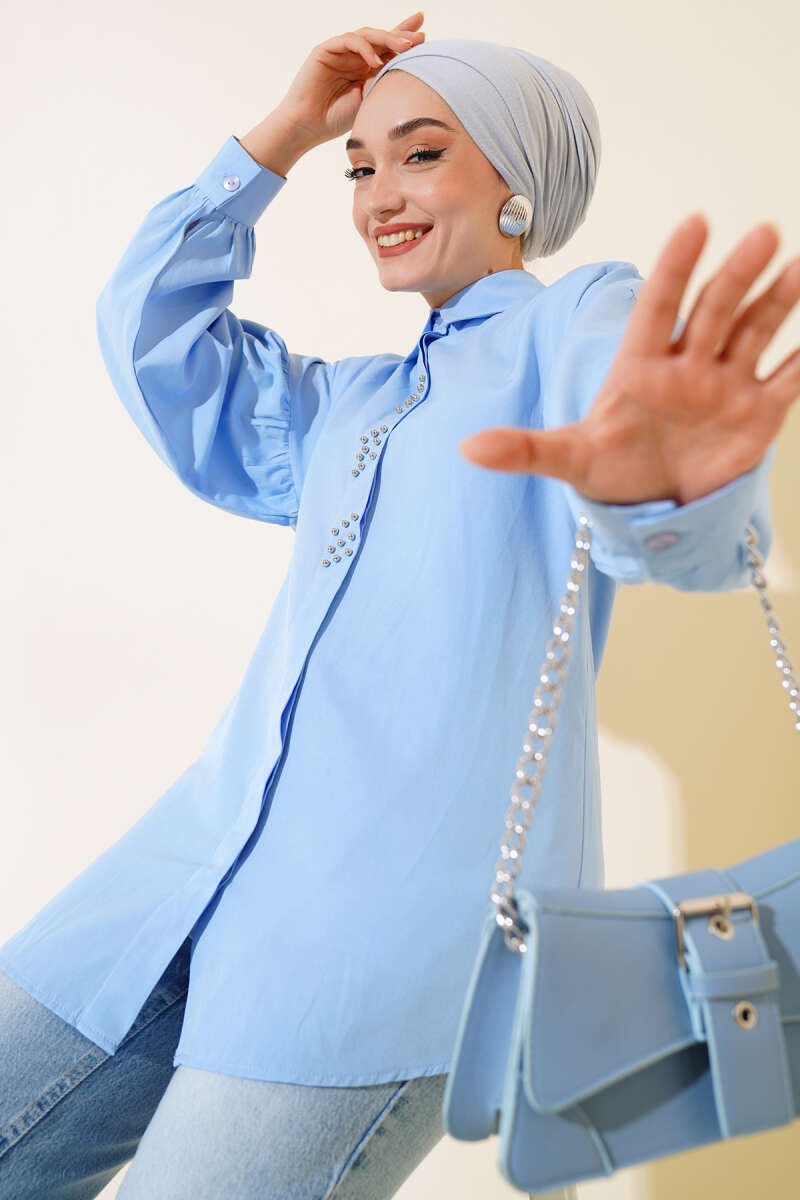 Boncuk İşlemeli Gömlek Fıstık Yeşili