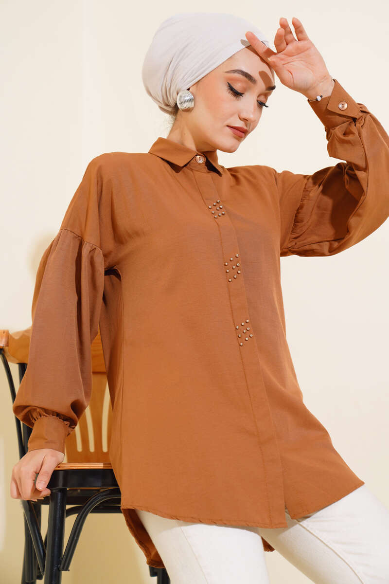 Boncuk İşlemeli Gömlek Fıstık Yeşili
