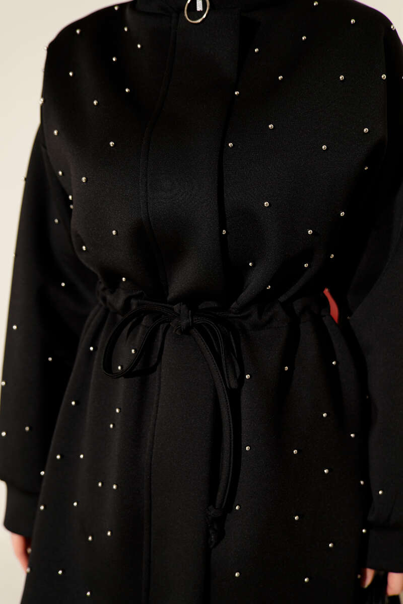 Boncuk Süslemeli İpli Scuba İkili Takım Kahve