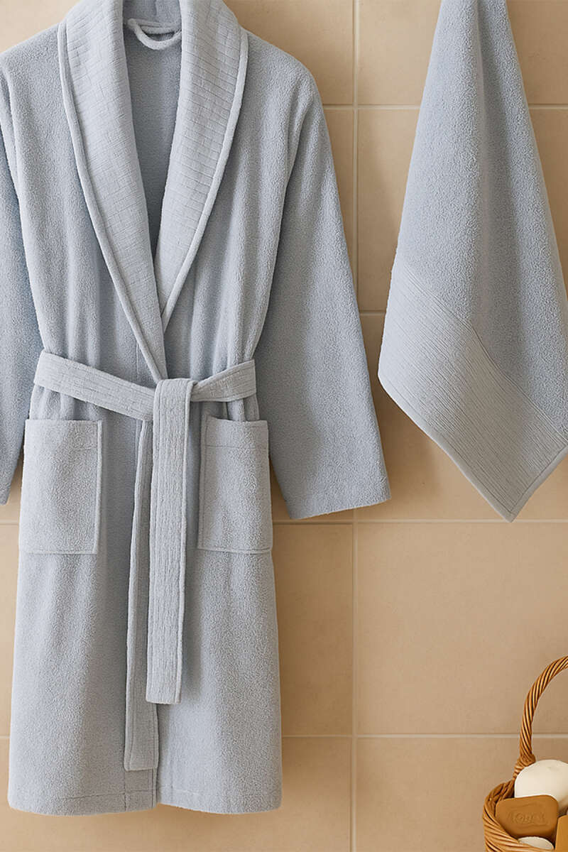 Bornoz ve Havlu 2'li Takım Buz Mavisi