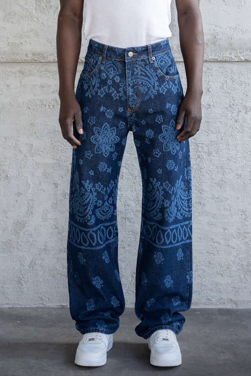 Efektli Baggy Erkek Kot Pantolon Koyu Mavi