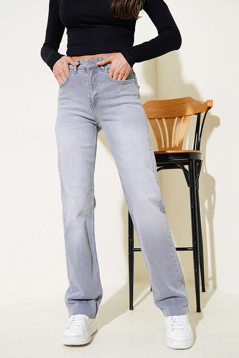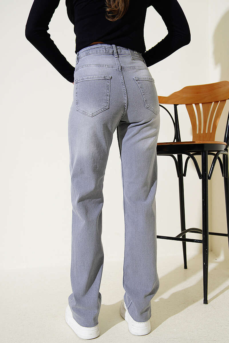 Boru Paça Kesikli Kot Pantolon Gri