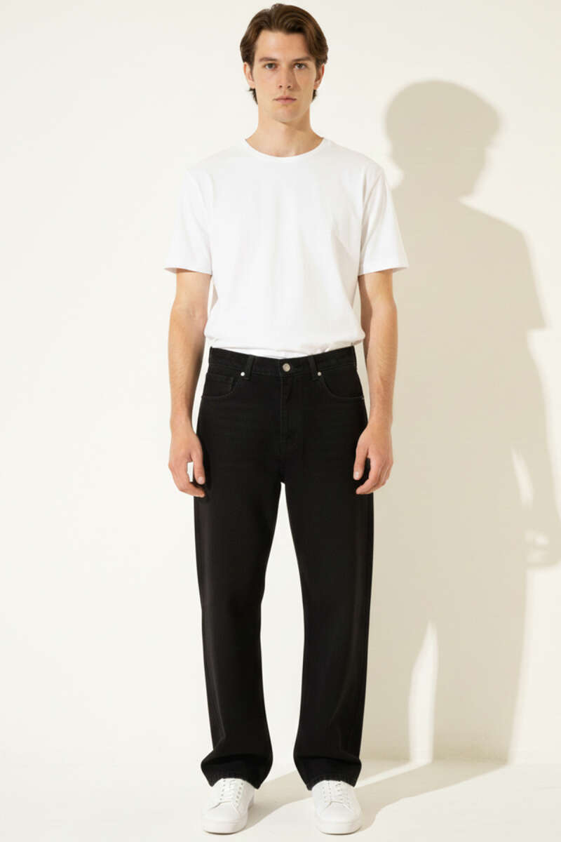 Bol Paça Erkek Kot Pantolon Siyah