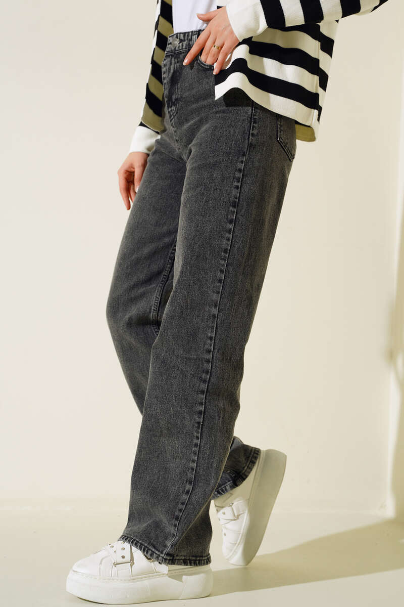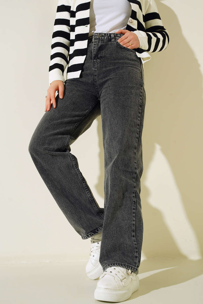 Yeni sezon model pantolonumuz boru paçadır. Pantolonumuz yüksek beldir. Düğmeli ve fermuarlı model olan pantolonumuzun beş adet kemer köprüsü bulunmaktadır.