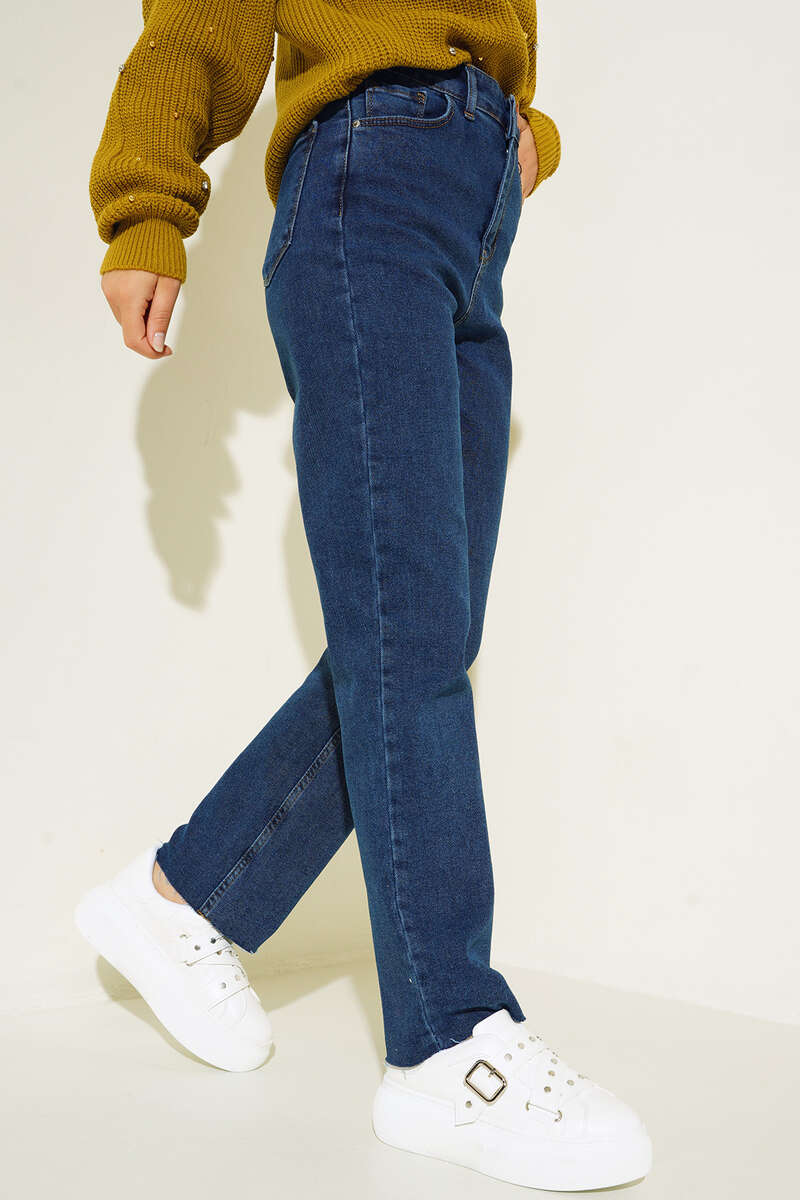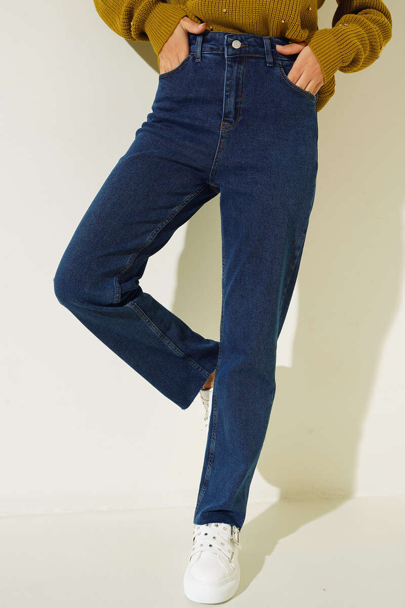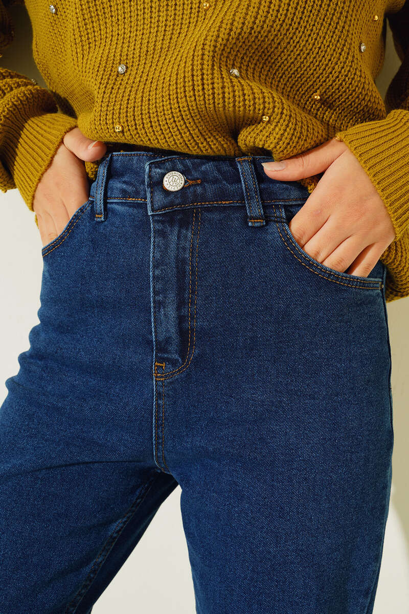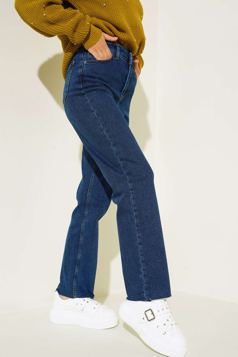 Yeni sezon jean pantolonumuz boru paça modeldir. Pantolonumuzun yanlarında ve arkasında cepleri bulunmaktadır. Beş adet kemer köprüsü olan pantolonumuz şık bir kombinde ihtiyacınız olacak bir modeldir. Kemer aksesuar olarak kullanılmıştır.