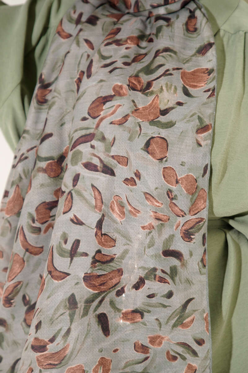 Ebruli Çiçekli Yarım Düğmeli Elbise Gökkuşağı
