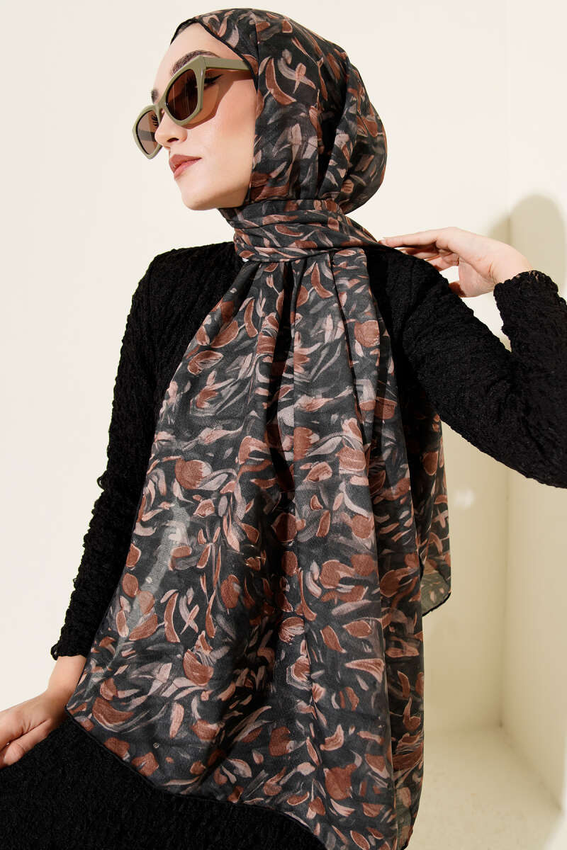 Botanik Desen Demore Şal Kahve