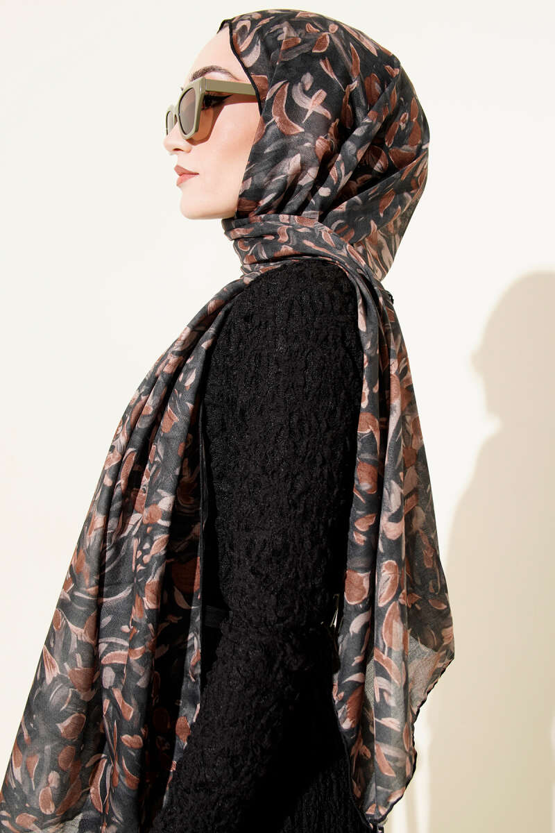 Botanik Desen Demore Şal Füme